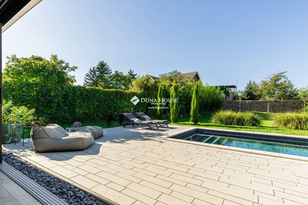 Ábrahámhegyen eladó újszerű, minimál stílusú balatoni családi ház kétgenerációs lehetőséggel, medencével és teraszokkal!