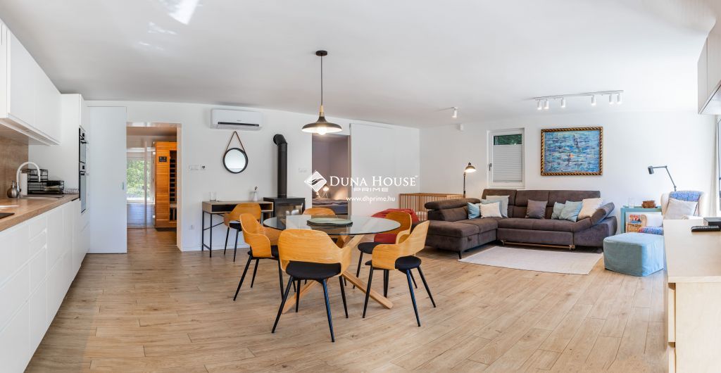 Ábrahámhegy csendes, zöldövezeti részén kínálunk eladásra egy újszerű, modern, minimál stílusban épült balatoni jellegű családi házat, amely a kényelem és a természet harmóniáját ötvözi.
