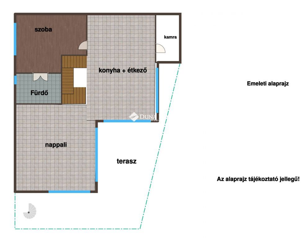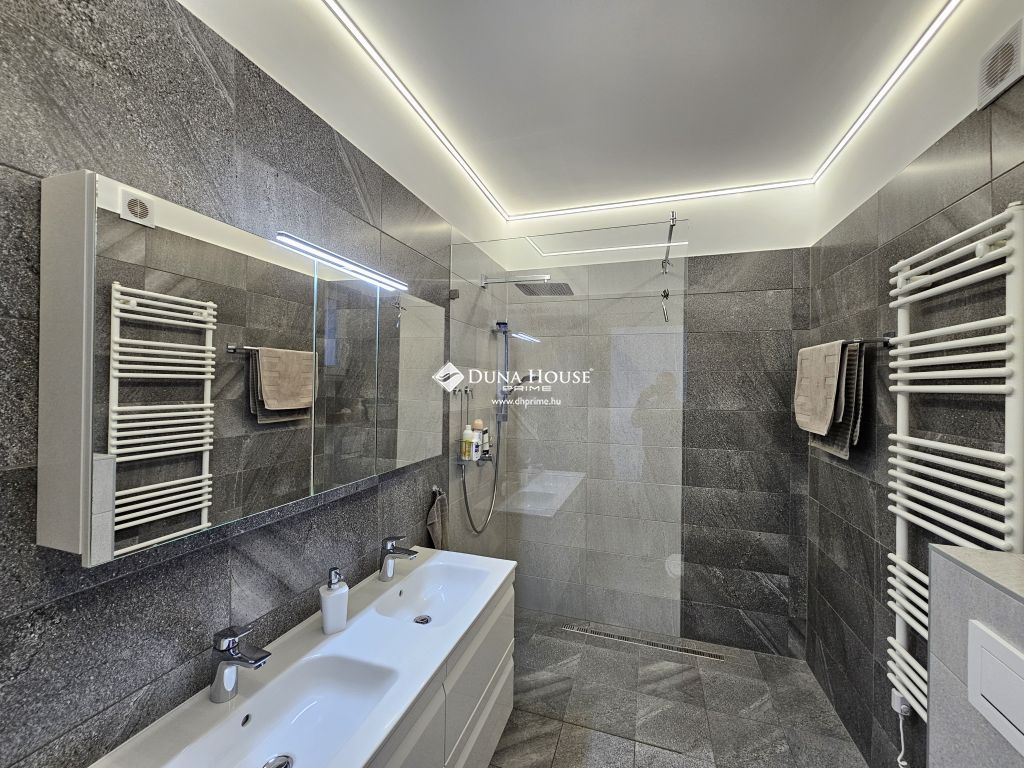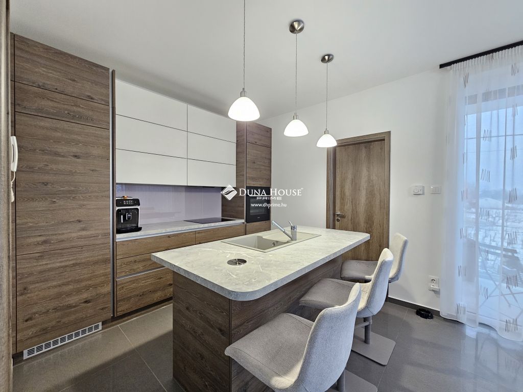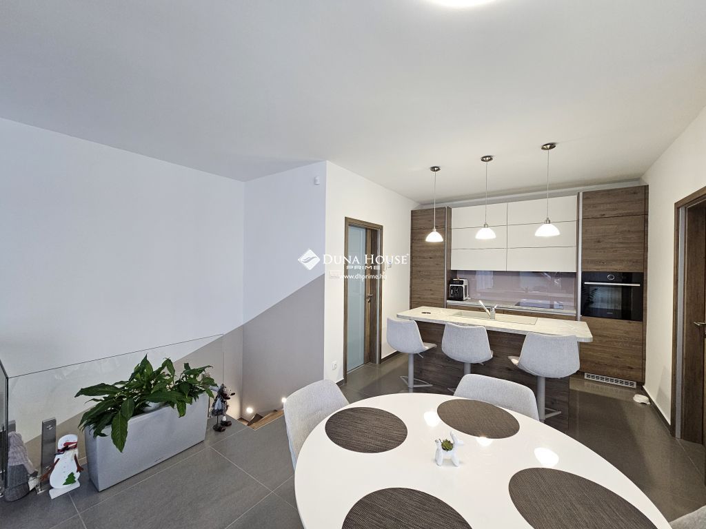 A felső szinten található a főháló, illetve a gyönyörű panorámával rendelkező amerikai konyha ètkezővel, nappalival, ahonnan kilèpve egy 25 m2 teraszon találjuk magunkat.