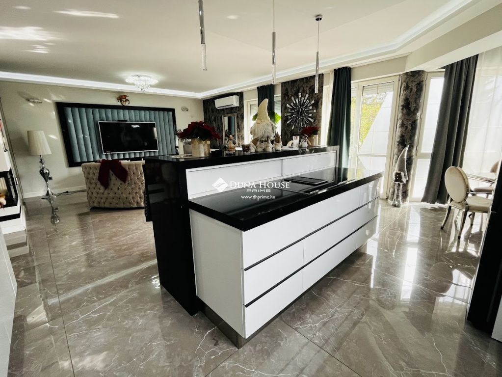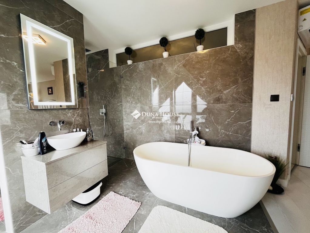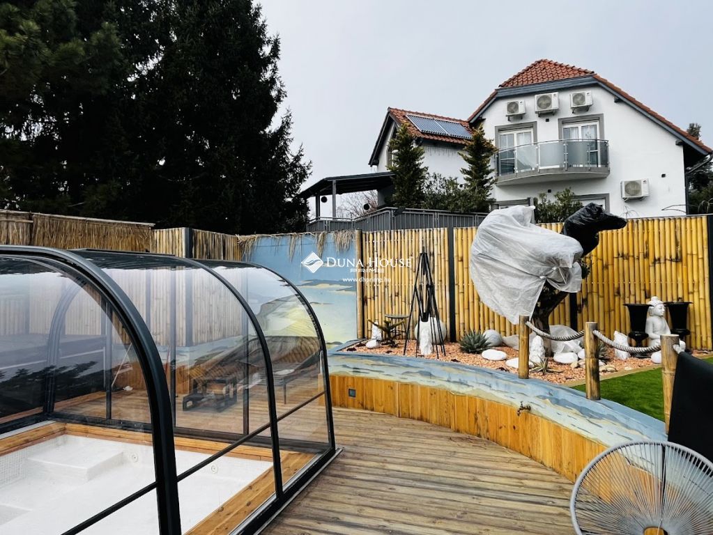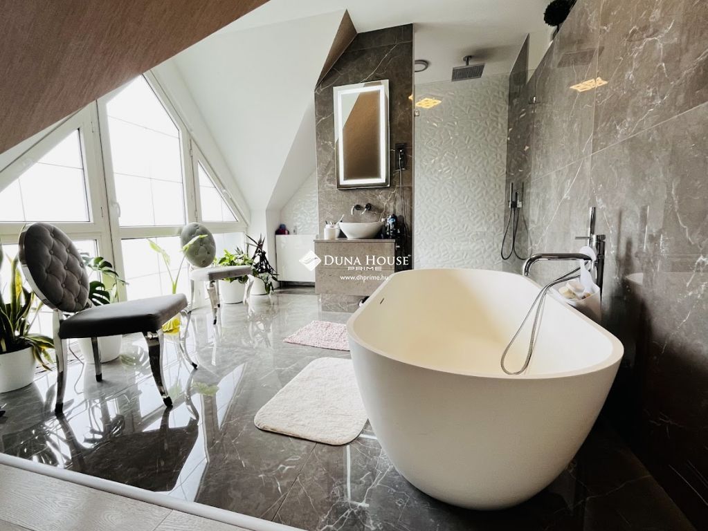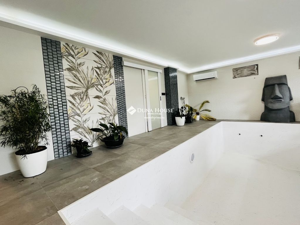 A luxus otthon nem csak kényelmes lakóteret, de egy külön wellness apartmant is kínál, melyben egy medence, szauna és sószoba található, így otthonából nem kell elmozdulnia a pihenéshez és a feltöltődéshez. A háromszintes kialakítás tökéletesen elkülöníthető teret biztosít a család minden tagjának, akár generációk együttélésére is kiválóan alkalmas.