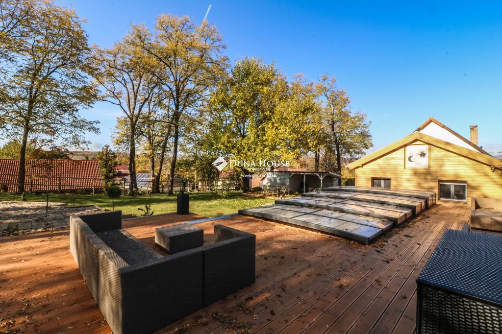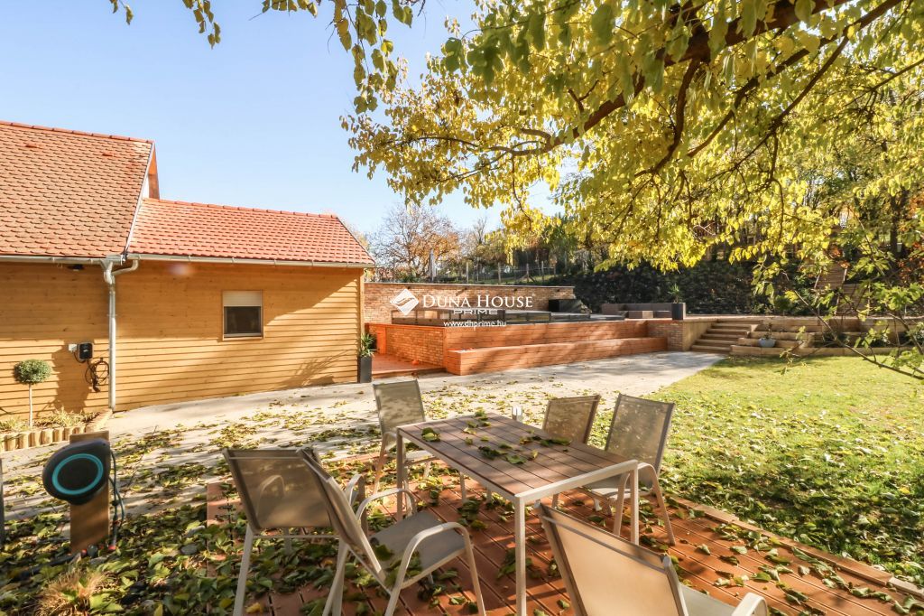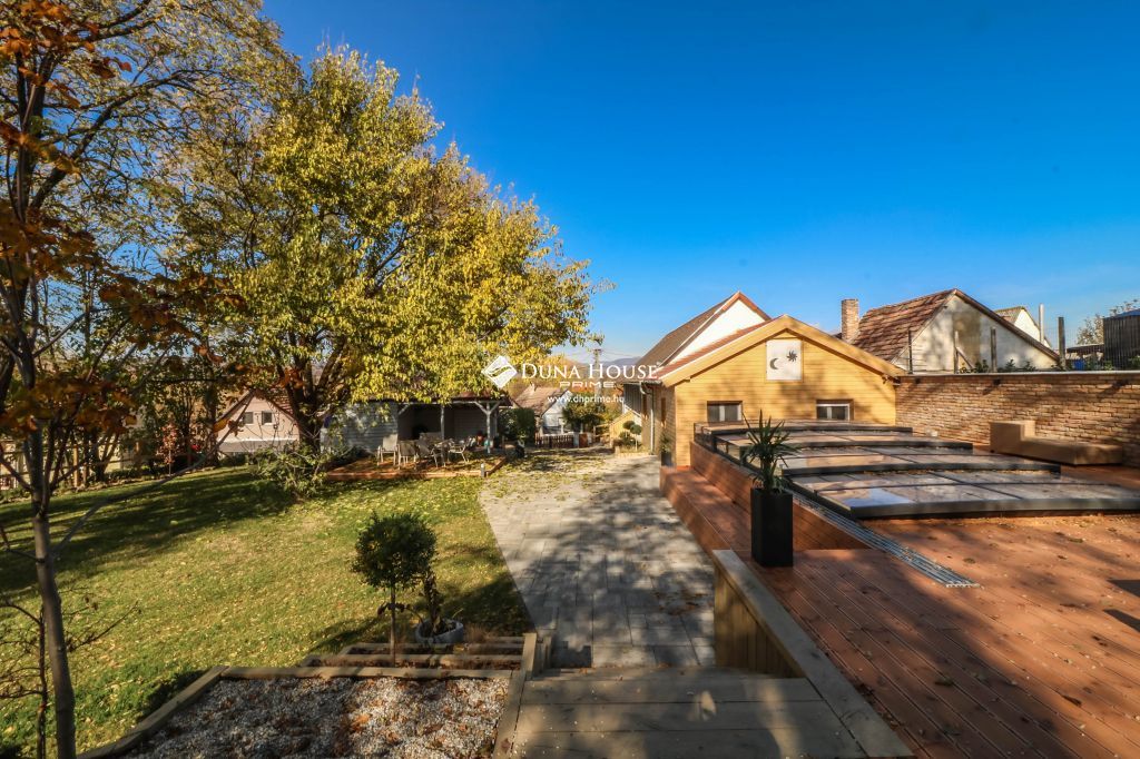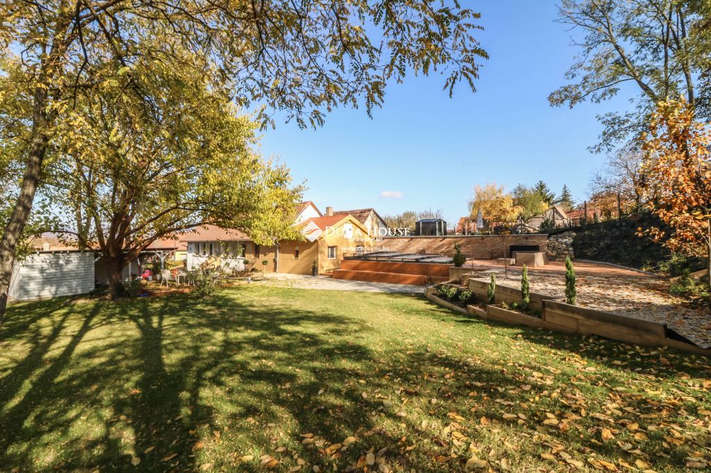 Az ingatlan 8000 m2-es parkosított kertet és medencével, gyümölcsössel, játszótérrel felszerelt igazi családi otthon.
