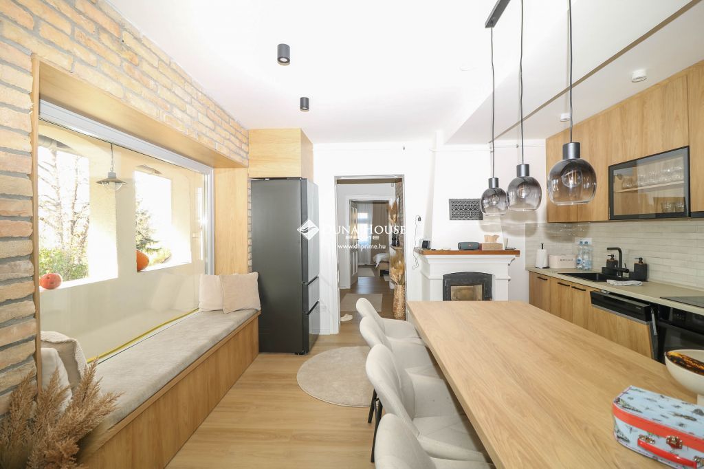 Lépjen be ebbe a hangulatos, mégis modern otthonba, ahol a hagyományos parasztház jelleg elegánsan ötvöződik a modern design elemekkel. A tágas és világos nappalit egy meghitt kandalló teszi még otthonosabbá a hűvösebb estéken. A nyári hónapokban pedig a klíma gondoskodik a kellemes hőmérsékletről. A praktikusan kialakított konyha minden mai igényt kielégít, és tökéletes helyszíne lehet családi összejöveteleknek vagy baráti vacsoráknak.