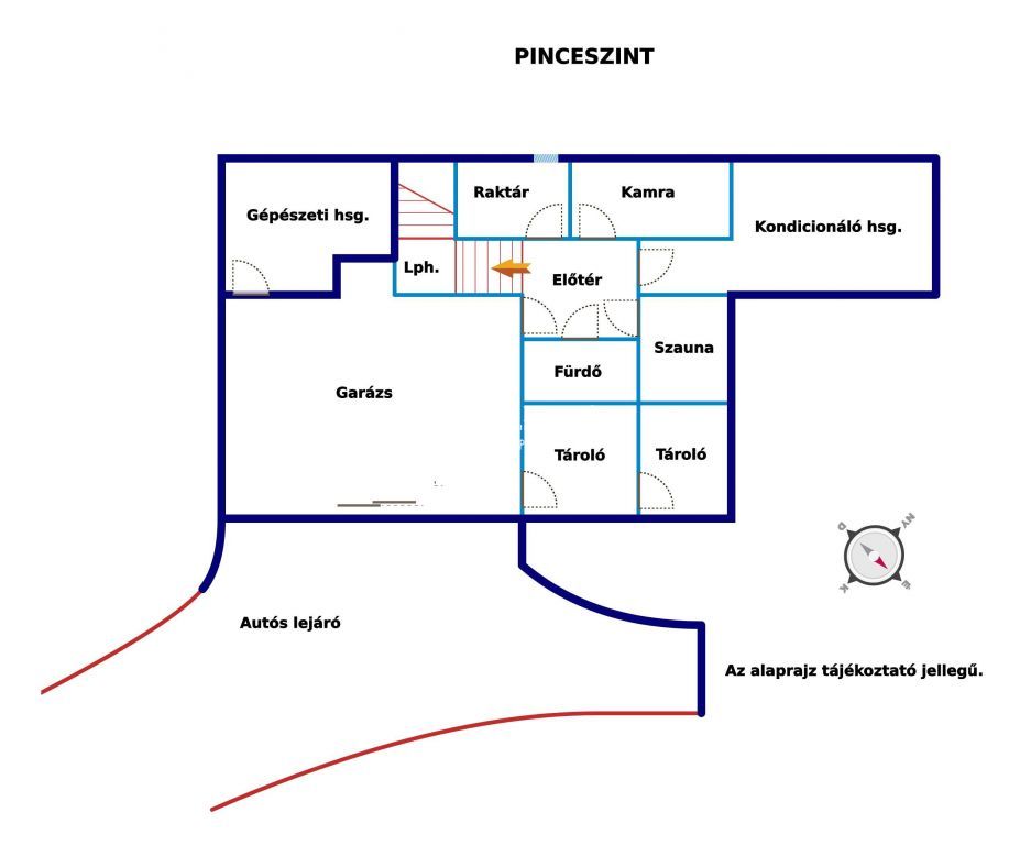 - Alsó szint: dupla garázs, fedett autóbeállók, szauna, háztartási helyiségek és egy teljesen felszerelt edzőterem