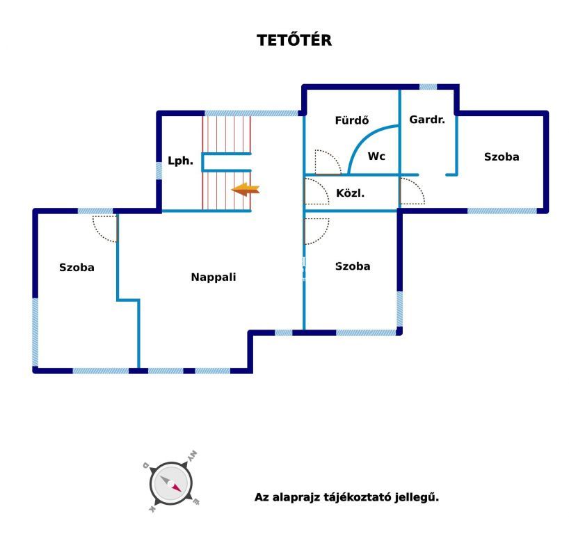 - Első emelet: 4 hálószoba, 2 elegáns fürdőszoba, valamint egy praktikus gardrób