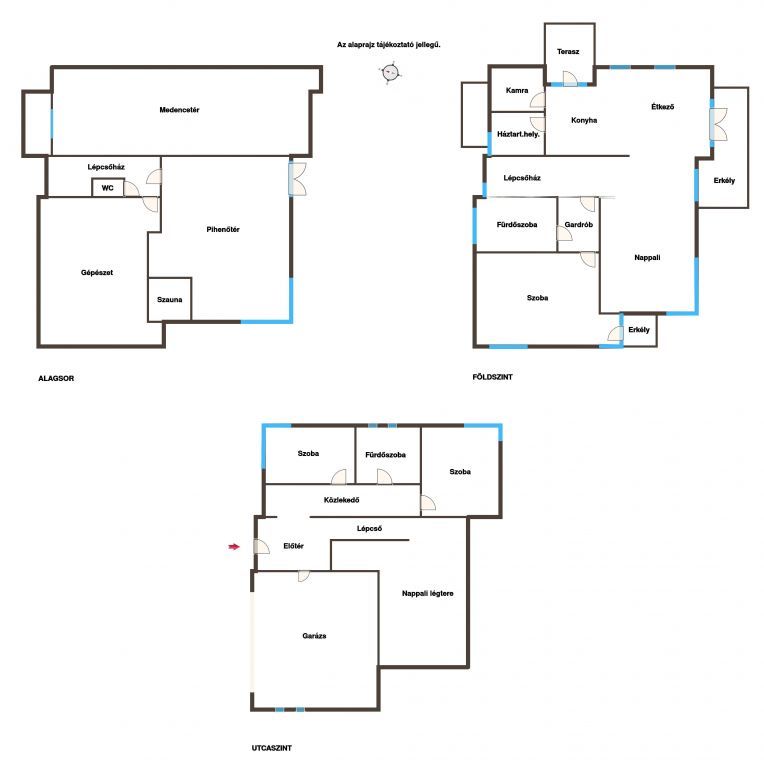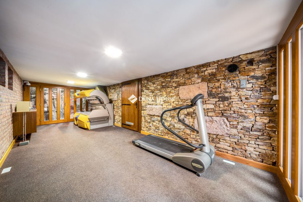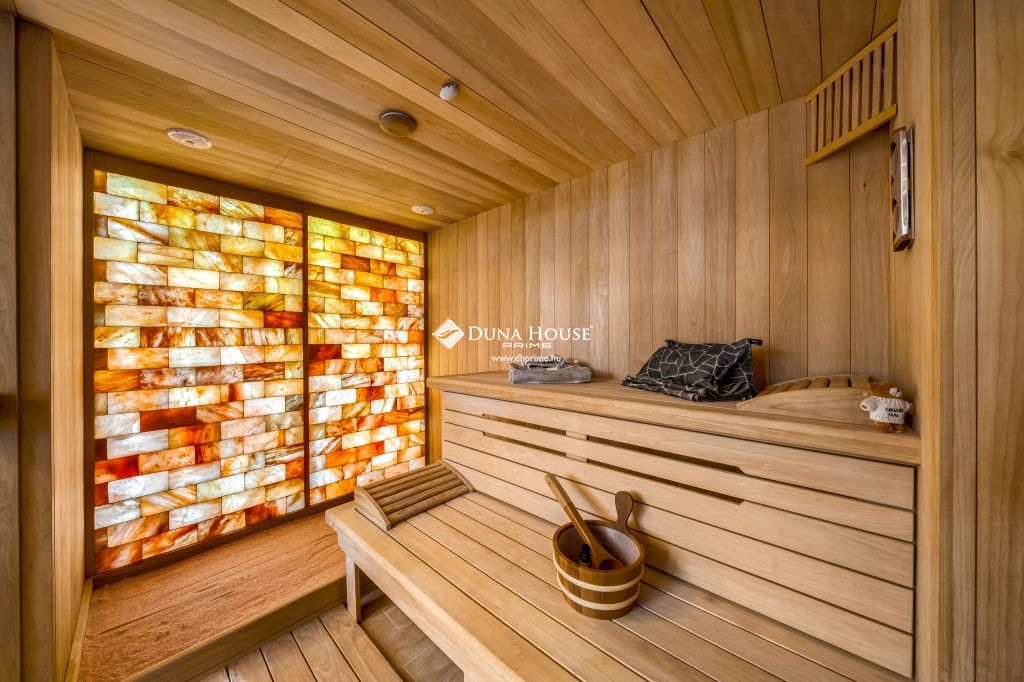Az utcaszinten kapott helyet a garázs, valamint két további hálószoba és egy fürdőszoba, míg a legalsó szint valódi privát wellnessoázist kínál: hatalmas beltéri medence, szauna és pihenőtér gondoskodik a feltöltődésről.