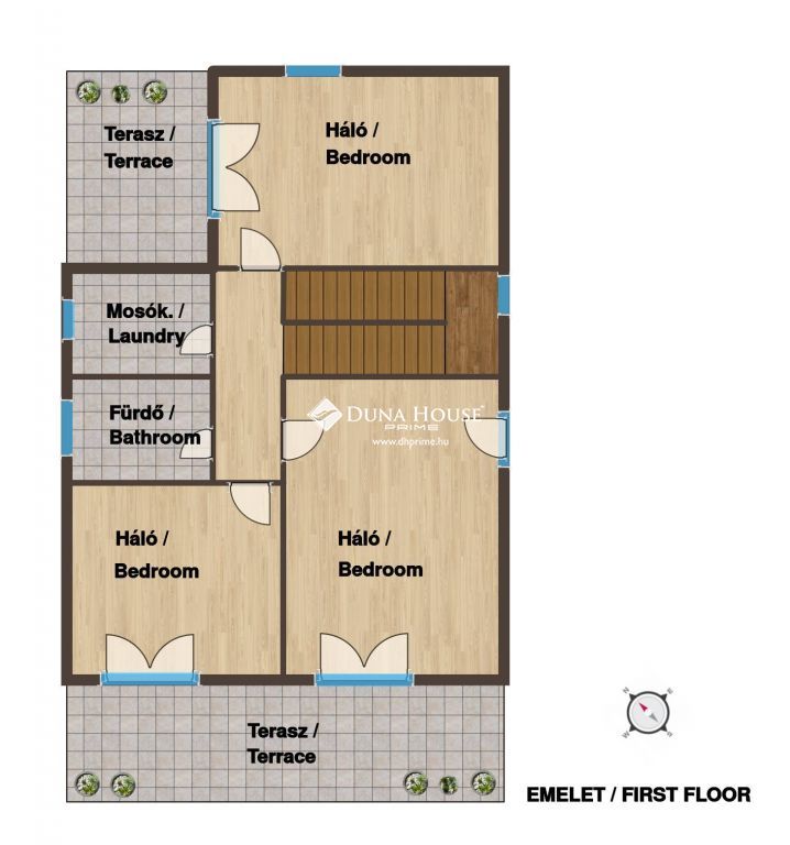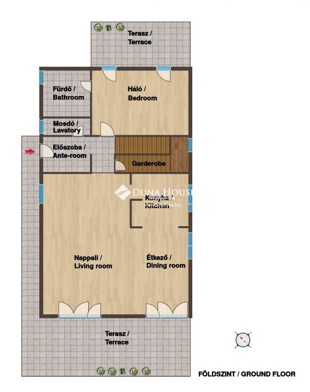 Minden szobához terasz tartozik, minden helyisége ablakos.