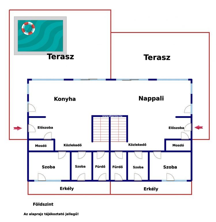 Az ingatlan panorámás teraszán maximális feltöltődést biztosít a Hotspring Envoy sós vizű jakuzzi. Az Envoy az egyik legsikeresebb HotSpring modell, hiszen az 5 férőhelyes masszázsmedence már rendelkezik fekvőhellyel is és a beltere is rendkívül tágas. A jakuzzi vezérlése egy kivehető érintőképernyős kezelőpanel segítségével történik, melyen keresztül szabályozhatóvá válnak abefúvók működése, a vízhőmérséklet, valamint a jakuzzi világítása is. A masszázsmedencetermo tetejének mozgatásához, a nyitáshoz és záráshoz egyszerű megoldást jelent az alumíniumból készült tetőemelő szerkezet, melyet a medence oldalán lévő gomb segítségével működtethetünk.
