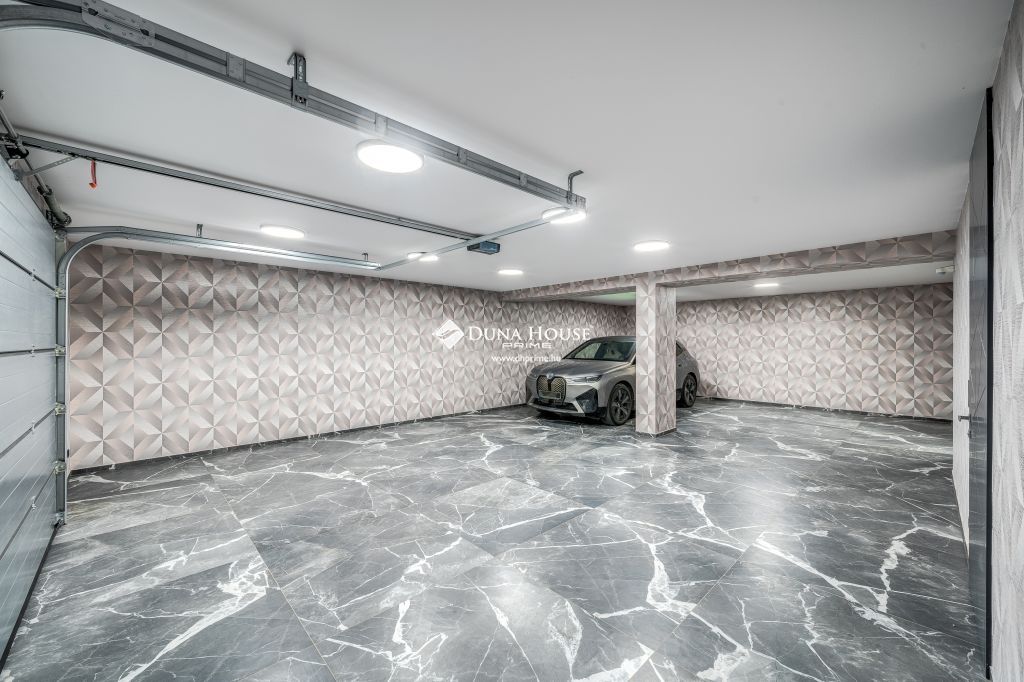 Az ingatlanhoz 4-8 autó parkolására alkalmas garázs tartozik, ahol elektromos autók töltésének a lehetősége is adott. A garázsba való bejutásért a Hörmann RenoMatic 42 hőszigetelt szekcionált garázskapu felel.