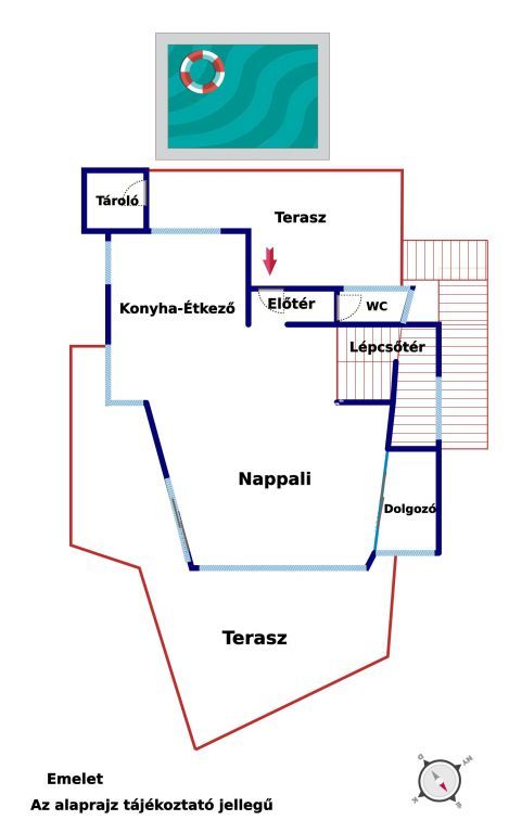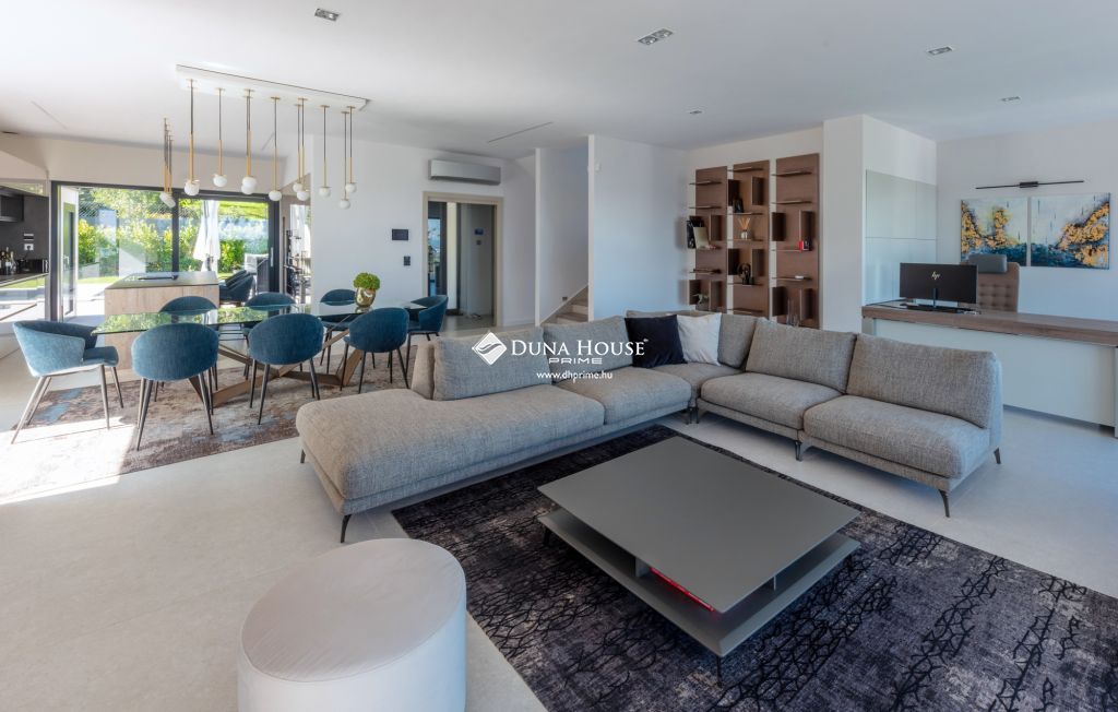 A csodálatos fekvésű, gondozott, 937nm-es parkosított telken 2020-ban átgondolt kiviteli tervek alapján megépült, 325 m² hasznos alapterületű otthon négy tágas hálószobát, három luxusminőségű fürdőszobát, gardróbokat, valamint egy monumentális nappali-konyha-étkező teret foglal magában, ahol külön dolgozósarok is helyet kapott. A nappali szinten külön vendégmosdó is biztosítja a kényelmet.