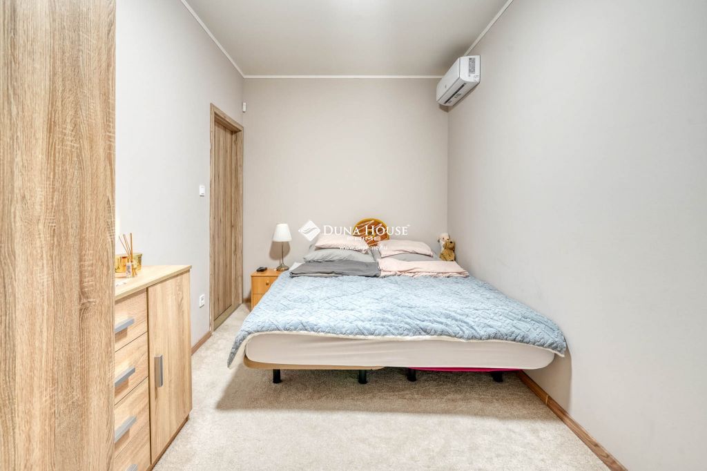 A ház teljes területén padlófűtés biztosítja az egyenletes hőérzetet, helyiségenként külön szabályozható termosztátokkal, emellett minden szobában hűtő-fűtő klíma is rendelkezésre áll. A hőszigetelt nyílászárók elektromos zsalúziával és szúnyoghálóval felszereltek. A hőszivattyú már megvásárlásra került, a 5,6 kW-os napelemrendszer pedig még az idei évben felszerelésre kerül, így az ingatlan fenntartása hosszú távon kifejezetten kedvező.