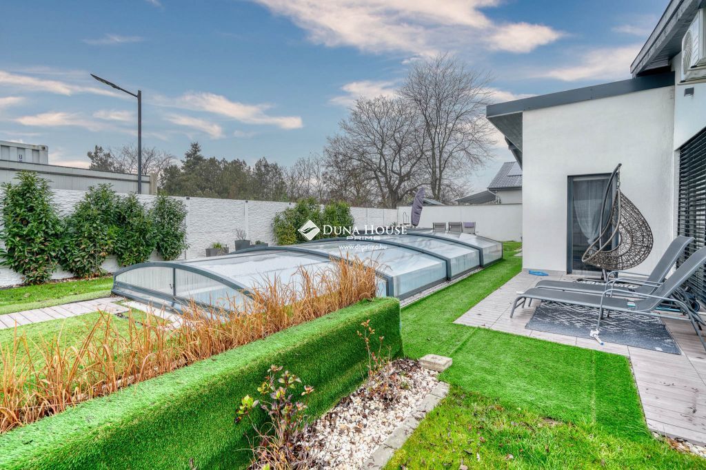 Budapesttől mindössze 27 km-re, Délegyháza csendes, rendezett részén kínálunk megvételre egy 2021-ben épült, földszintes, minimál stílusú, 261 m²-es családi házat, 824 m²-es parkosított telken.