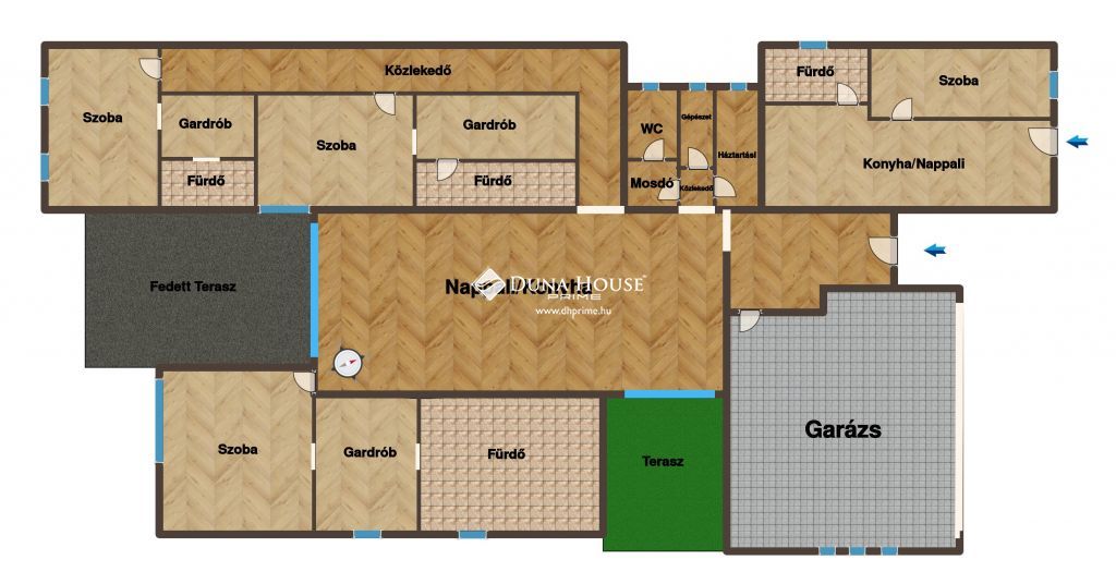 -3 külön nyíló hálószoba, mindegyik saját gardróbbal és fürdőszobával