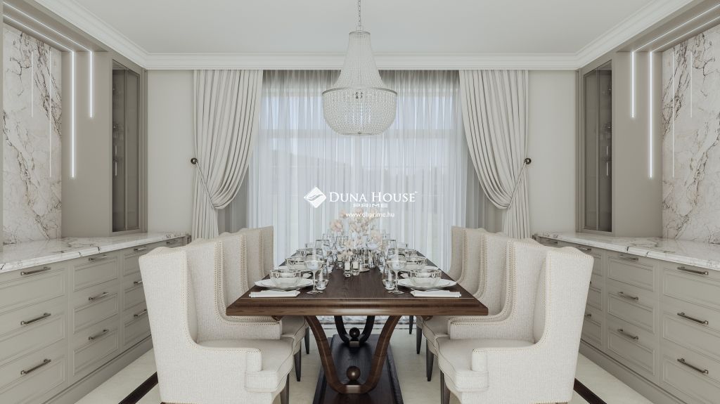 Érd egyik legkedveltebb, elegáns részén kínálunk megvételre egy különleges hangulatú, 630 m²-es villát, amely egy több mint 2000 m²-es, gondosan parkosított telken fekszik. A birtok közepén elterülő dísztó–halastó és a környező növényzet igazi privát oázist teremtenek, ahol a természet csendje találkozik a modern kényelemmel.