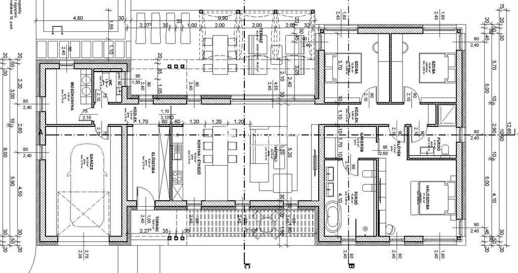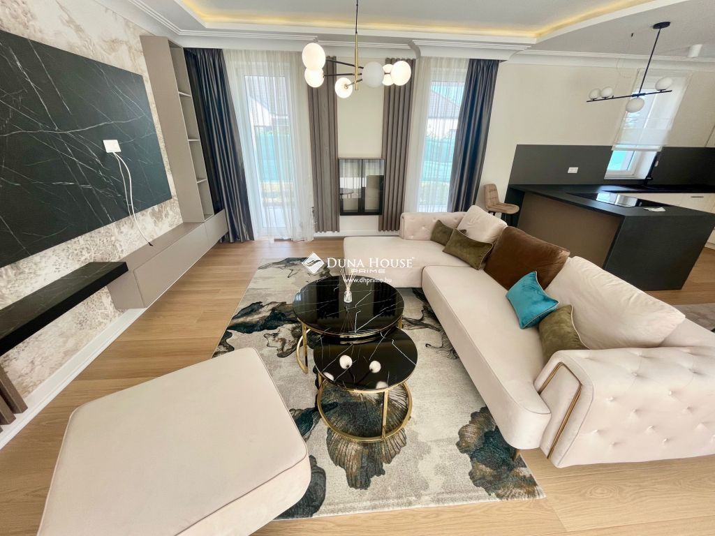 Az ingatlanban minden megtalálható, ami elvárható egy kényelmes otthontól. Kialakításra került benne tágas nappali, több mint 40 nm-en, vendégtoalett, háztartási helyiség, előszoba és elszeparáltan 3 normál méretű hálószoba is 2 fürdővel és gardróbbal.