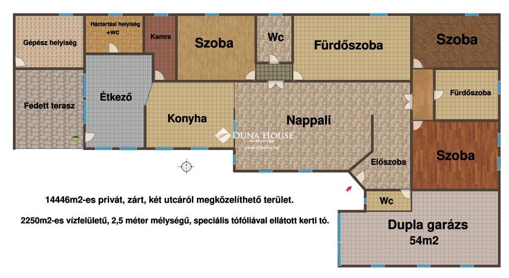 A birtok különlegessége a 2 250 m²-es kerti tó, a két fúrt kút, az 50 m²-es szaletli, a borospince, valamint a fedett terasz. Igazi oázis azok számára, akik prémium minőségű, különleges otthont keresnek.