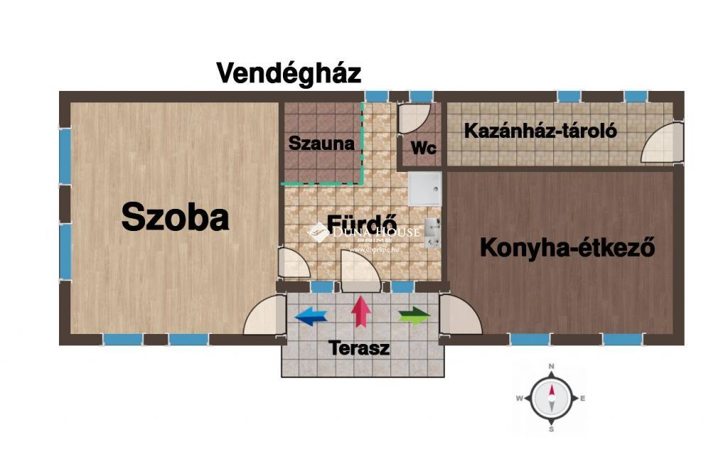 A főépületben tágas nappali-étkező-konyha, 3 hálószoba, 2 fürdőszoba, 3 WC, kamrák és háztartási helyiség található, valamint egy 54 m²-es dupla garázs is tartozik hozzá. A különálló, 70 m²-es vendégház szaunával, konyhával és étkezővel ideális vendégek vagy többgenerációs együttélés számára.