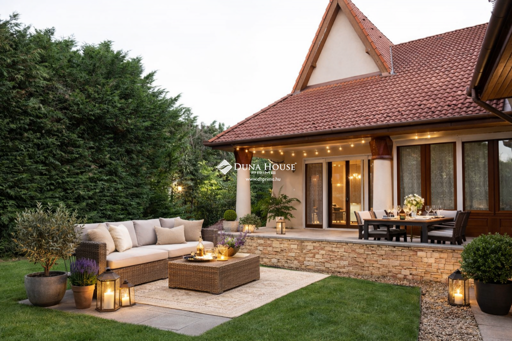 Az ingatlan valódi különlegessége a finn szauna és a wellnessrészleg, amelyek a mindennapokban is a luxus élményét nyújtják. A 30 m²-es terasz, az automata öntözőrendszerrel ellátott, parkosított és térkövezett udvar, valamint a dupla garázs tovább emelik az ingatlan értékét és kényelmét.