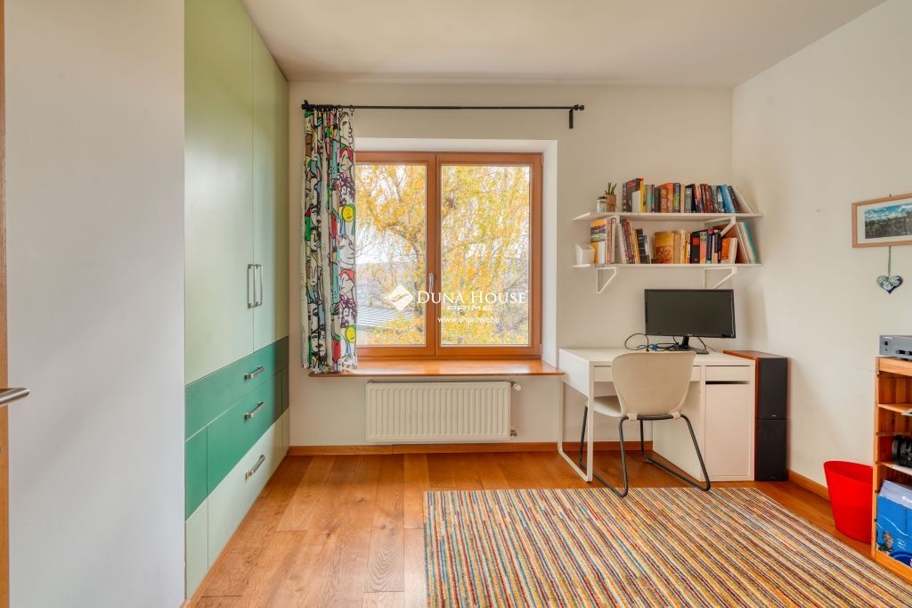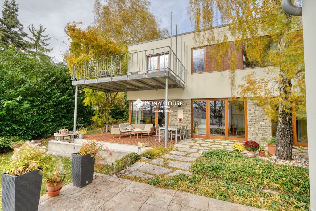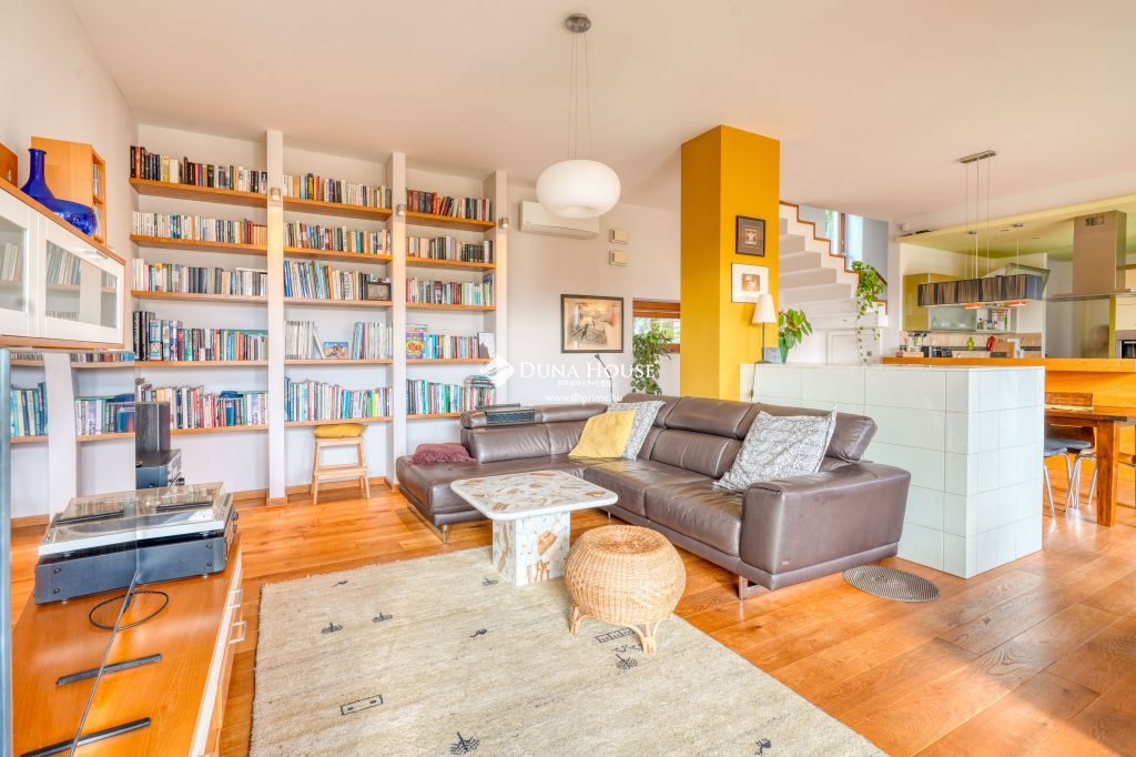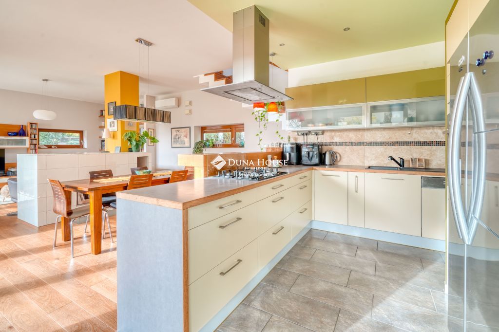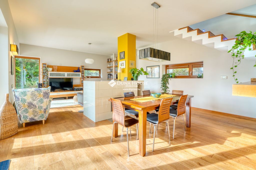 Nagykovácsi egyik legszebb, ősfás utcájában, a Nagy-Szénás déli lejtőjén kínálunk megvételre egy 237 m²-es, modern, panorámás családi házat, amelyet a tulajdonosok a környező fák megóvásával, a természet szerves részeként álmodtak meg. A végeredmény: egy építészeti értékű, időtálló otthon, amely fényben úszik, és minden részletében a minőséget képviseli.
