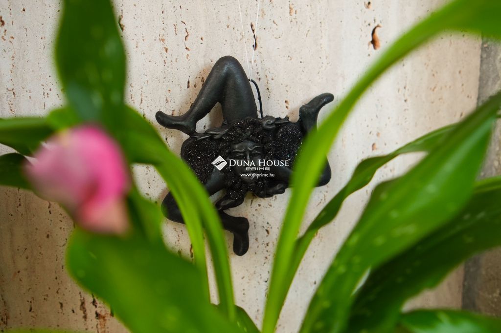 Az ingatlan minden részletében a természetes anyagok dominálnak: travertin mészkő, andezit terméskő, vörösfenyő és tölgy – padlón, lépcsőn és burkolatokon egyaránt.