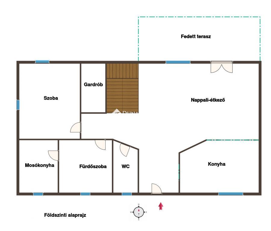 Belépve egy amerikai konyhás nappali–étkező fogad. Innen nyílik: