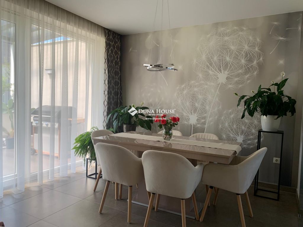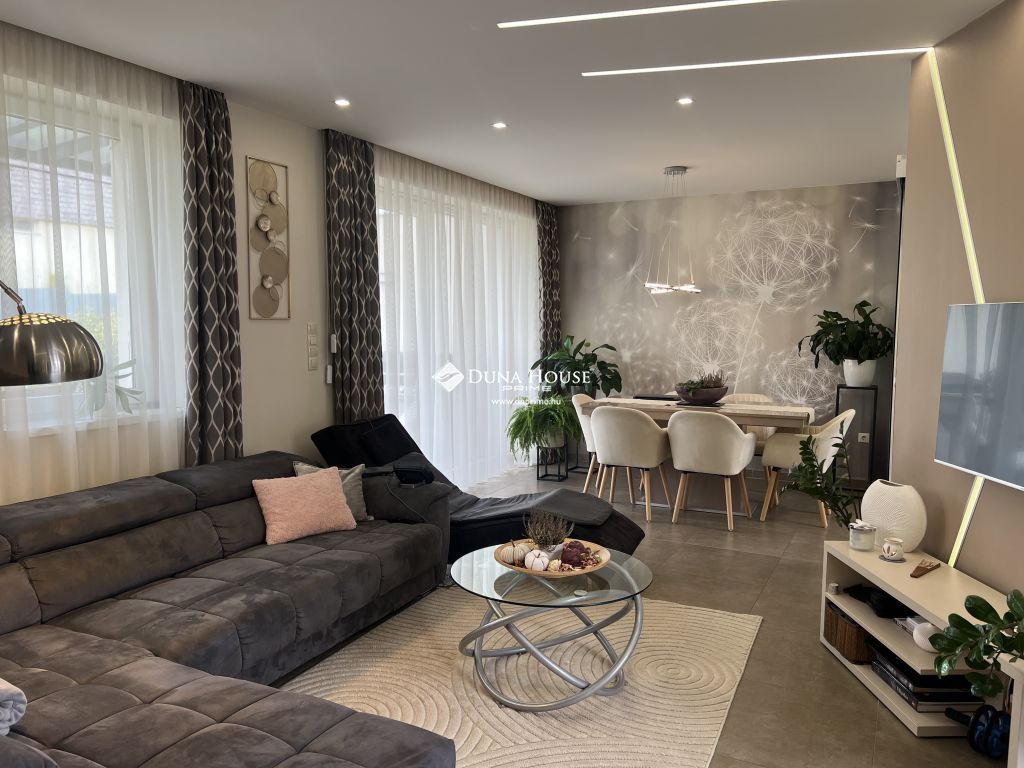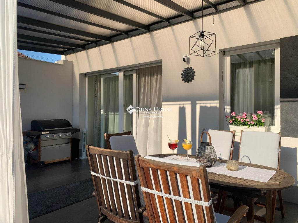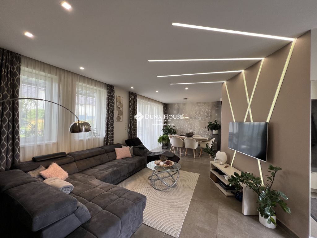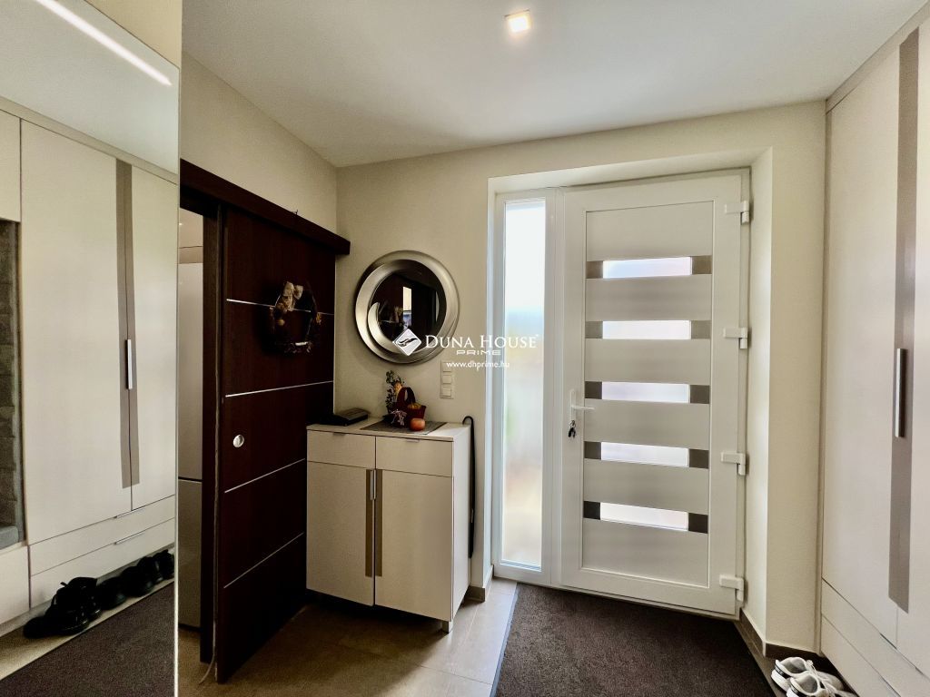 Az épület K–NY-i tájolású, padlófűtéses, elektromos redőnyökkel, szúnyoghálókkal, LED világítással, 5 kW-os napelemrendszerrel és Porotherm 38-as téglafallal, 12 cm hőszigeteléssel készült — így energiahatékonysága kimagasló.