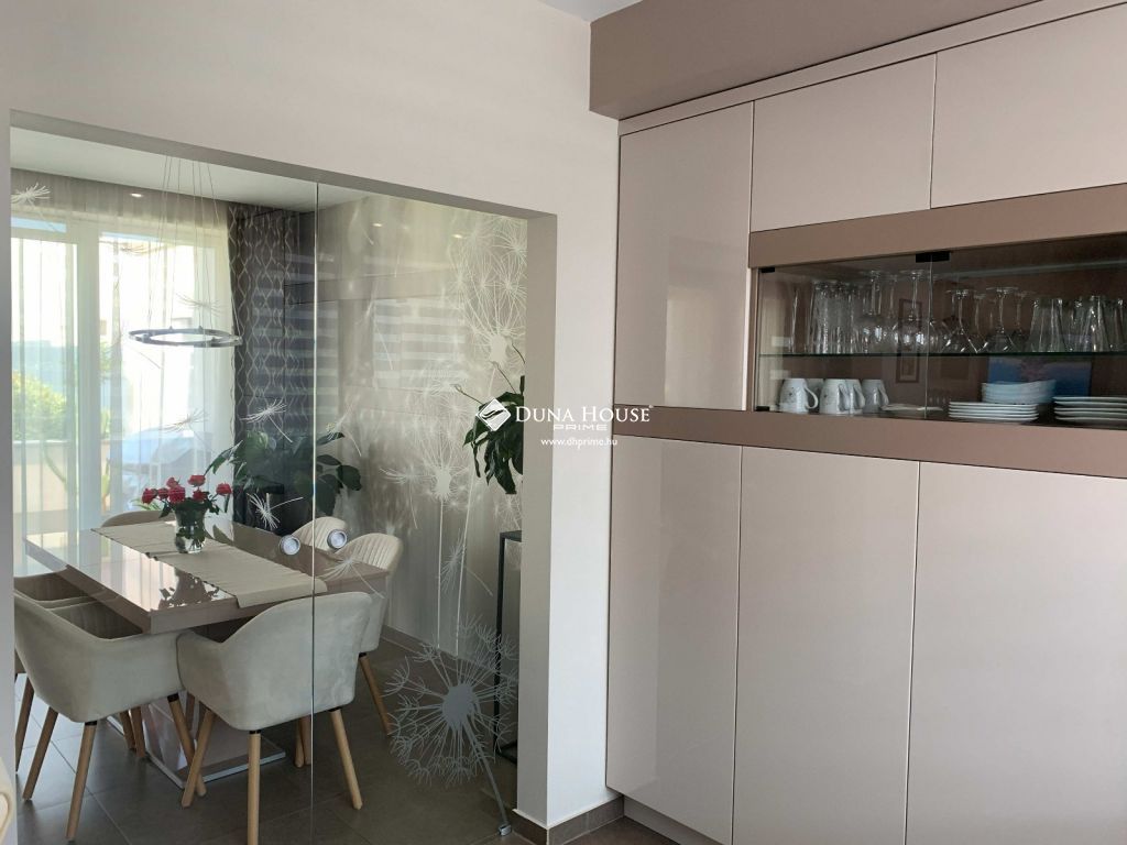 – modern, letisztult vonalvezetésű konyha, amely egy tolóajtóval és egy dupla üveg tolófallal teljesen leválasztható