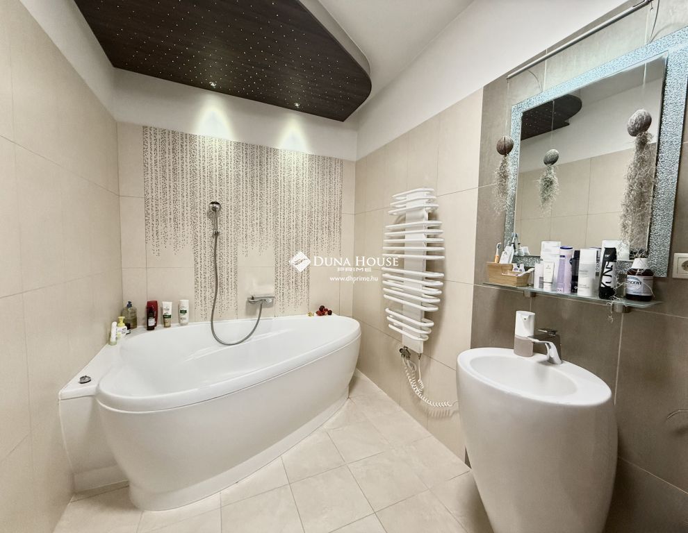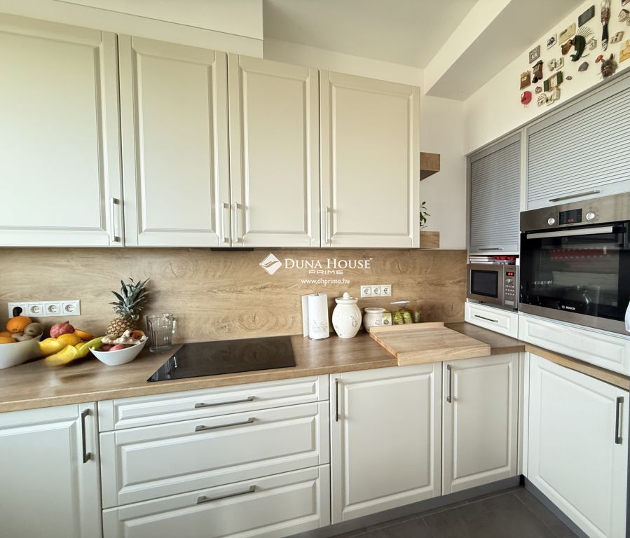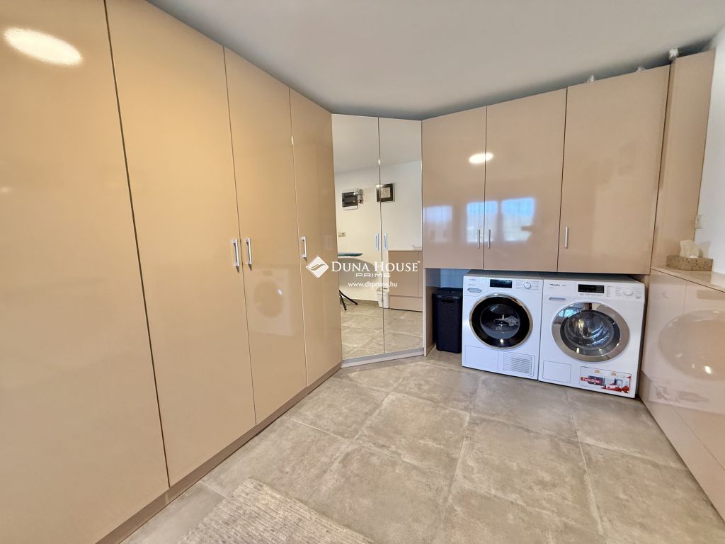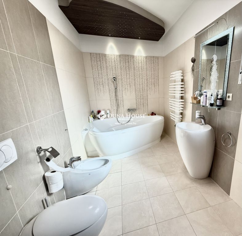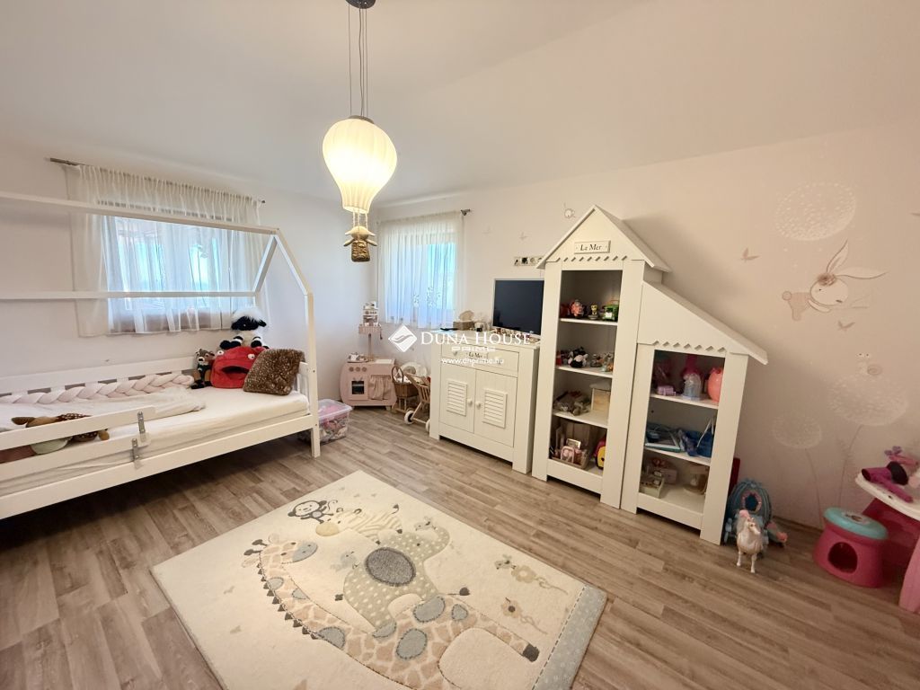 A belső terek átgondolt elrendezésűek: tágas nappali, kényelmes étkező, vadonatúj, modern konyha, két gyermekszoba, egy hálószoba, két gardrób, két fürdőszoba és két különálló mosdó biztosítja a család kényelmét. A házhoz két nagyméretű terasz, egy óriási pince, valamint gondozott, mediterrán hangulatú kert tartozik automata öntözőrendszerrel és játszótérrel.