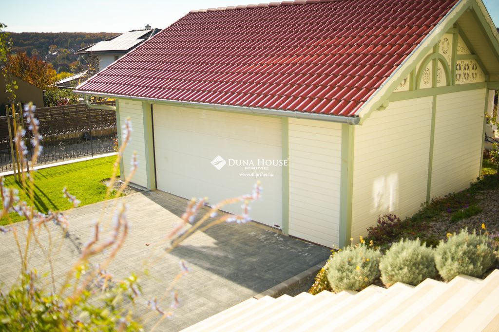 A tágas, világos terekkel rendelkező házhoz kétállásos garázs tartozik. A kert angolkert stílusban épült, több mint száz örökzölddel, mandulafenyővel, hársfával és díszcserjékkel, amelyek teljes privát szférát biztosítanak, miközben a házat természetes zöld környezet veszi körül.