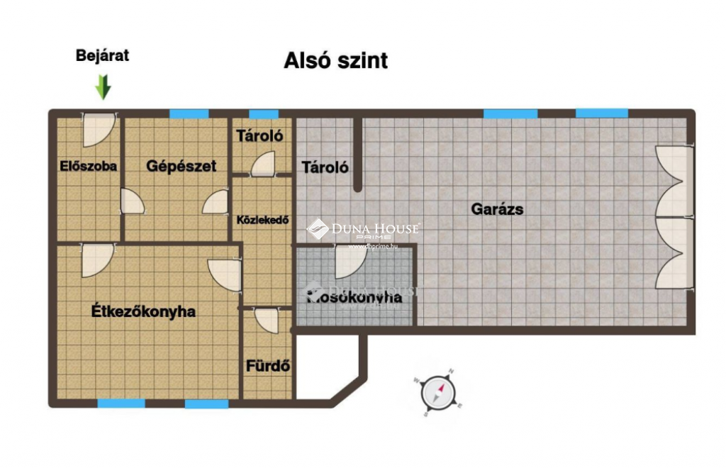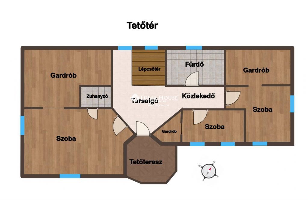 A ház elosztása kifejezetten tágas és jól átgondolt. Összesen 6 szoba áll rendelkezésre, valamint két külön szinten kialakított, teljes értékű konyha is megtalálható az ingatlanban, így akár kétgenerációs otthonként is kiválóan használható.