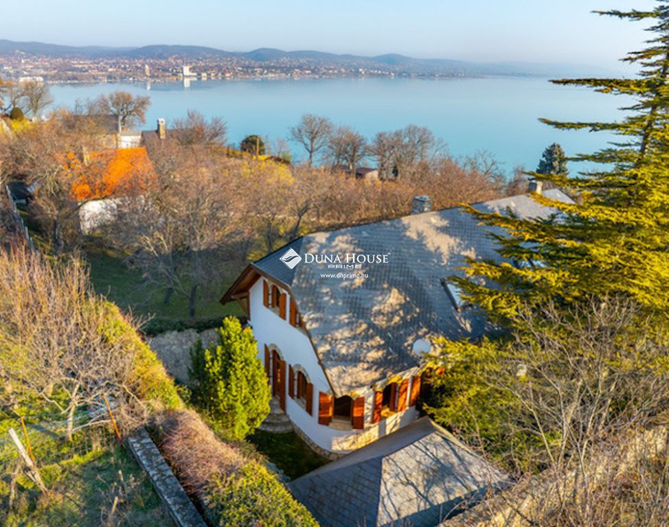 Tihany egyik legszebb részén, örök balatoni panorámával rendelkező, különleges hangulatú villaépület várja új tulajdonosát. Az ingatlan jellegzetes zsalugáterekkel, terméskő burkolattal és tágas teraszokkal rendelkezik, amelyekről lenyűgöző kilátás nyílik a Balatonra.