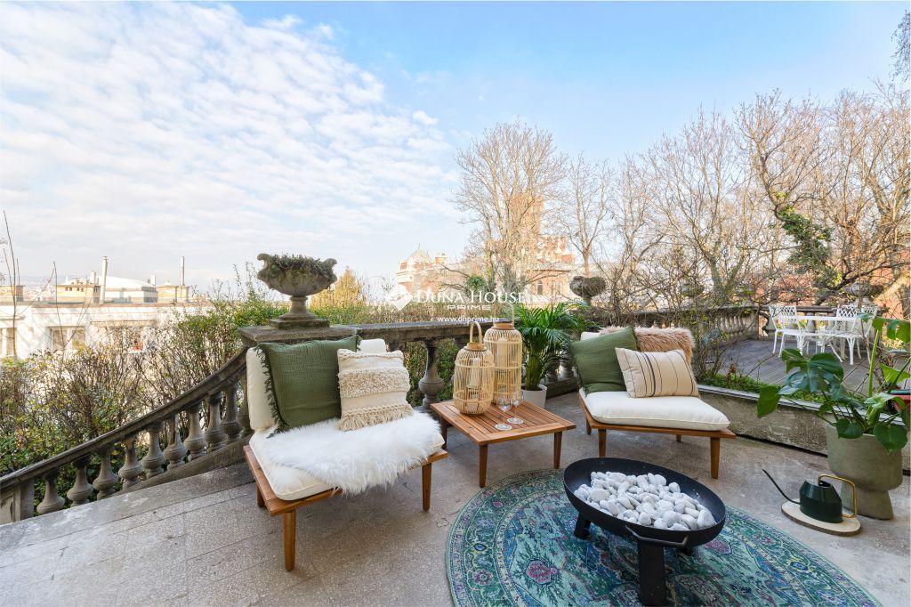 A kertkapcsolatos terasz különleges hangulatot biztosít, ahonnan közvetlen lejárat vezet a használati megállapodás alapján rendelkezésre álló, közel 300 m²-es kertrészhez. Ez a zöld környezet ritka érték a belváros közvetlen közelében, tökéletes helyszíne lehet pihenésnek, kikapcsolódásnak vagy baráti összejöveteleknek.