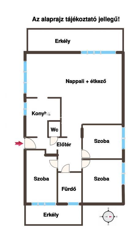 Elosztás: nappali + 3 szoba