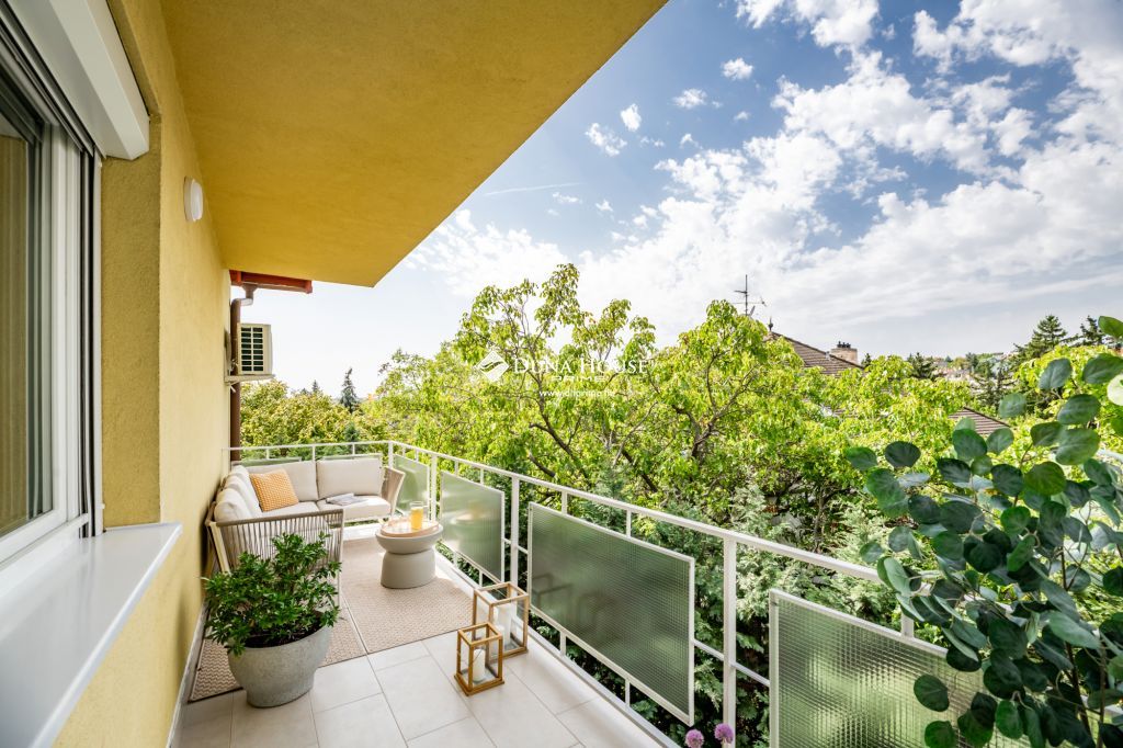 Budapest XI. kerületének egyik legkedveltebb, kertvárosi részén, Sasadon, eladó egy 1. emeleti, 91 nm-es, nappali + 3 szobás, dupla erkélyes, panorámás, teljes körűen felújított lakás.