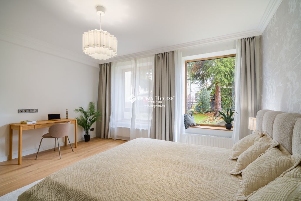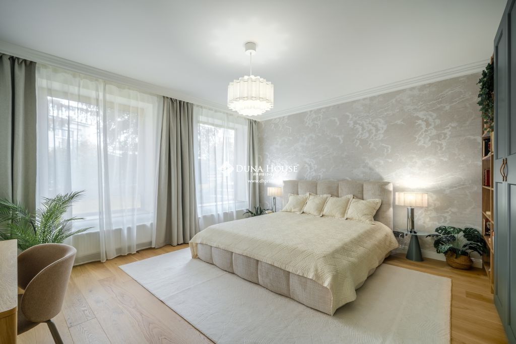 A nagyméretű nyílászáróknak köszönhetően a lakást egész nap természetes fény árasztja el, miközben a kertre néző kilátás minden évszakban nyugalmat és inspirációt nyújt.