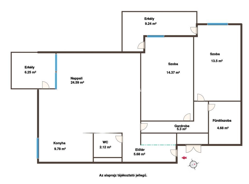 Alapterület: 89 m² + 2 erkély (összesen 15,5 m²)