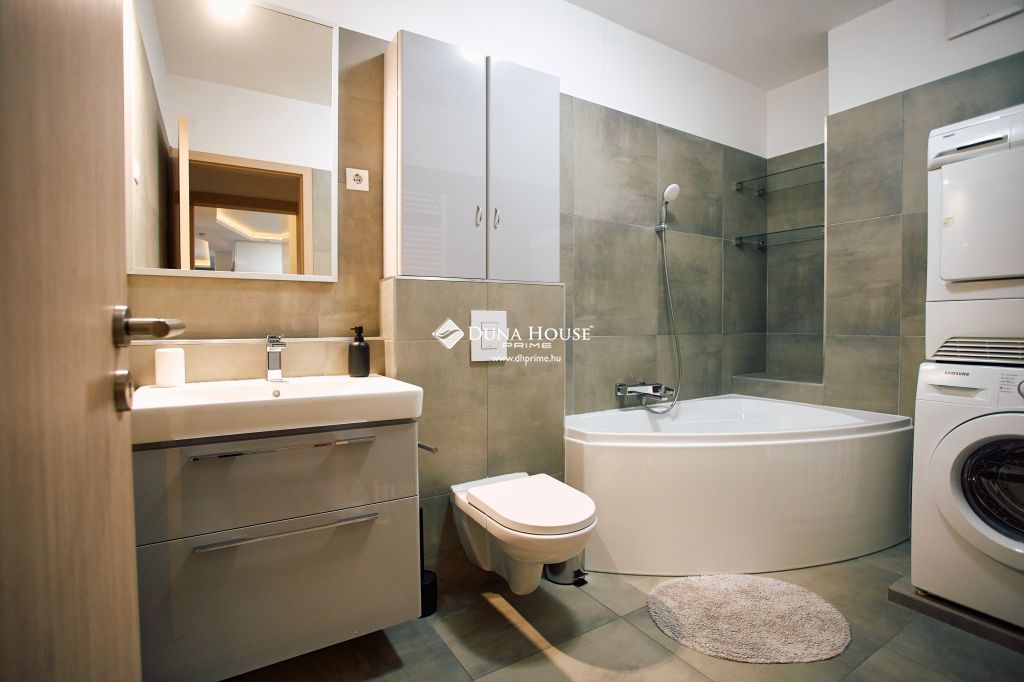 A modern fürdőszoba sarokkáddal és a beépített gardróbos előtér a kényelmet szolgálják, míg a 24 m²-es erkély ideális helyszín reggeli kávéhoz, baráti beszélgetésekhez vagy nyári vacsorákhoz.