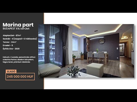 Budapest XIII. kerületének egyik legkedveltebb részén, a Marina Parton, eladásra kínálunk egy 85 m²-es, 4 szobás, világos, egyedi kialakítású lakást egy 2020-ban épült, modern társasház 5. emeletén.