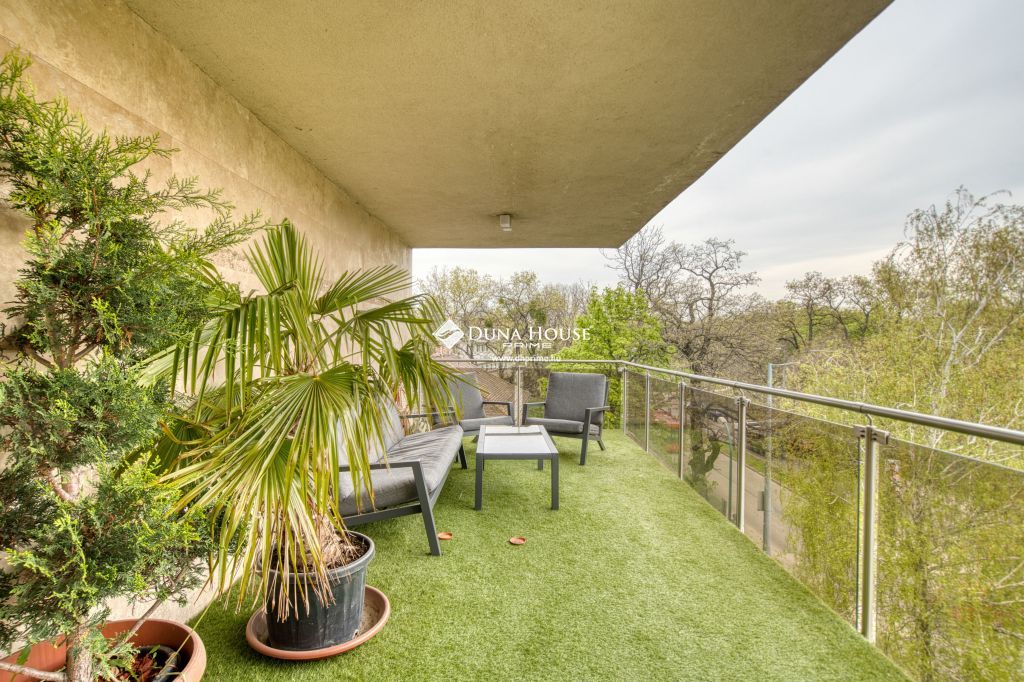 A különleges ingatlanhoz két nagyméretű, egyenként 23 m²-es panorámás terasz tartozik, melyekről zavartalan, zöld környezeti kilátás élvezhető – ritka érték ebben a városi környezetben.