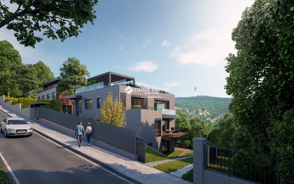 Eladó egy extra elegáns, luxus kialakítású, első emeleti, nettó 150 m²-es lakás Rózsadomb egyik legmagasabb pontján, közvetlenül a tájvédelmi körzet szomszédságában.