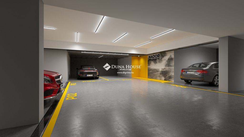 A lakáshoz három teremgarázs-beálló tartozik (20 M Ft/db), valamint egy nagyméretű, 12 m²-es tároló (10 M Ft).