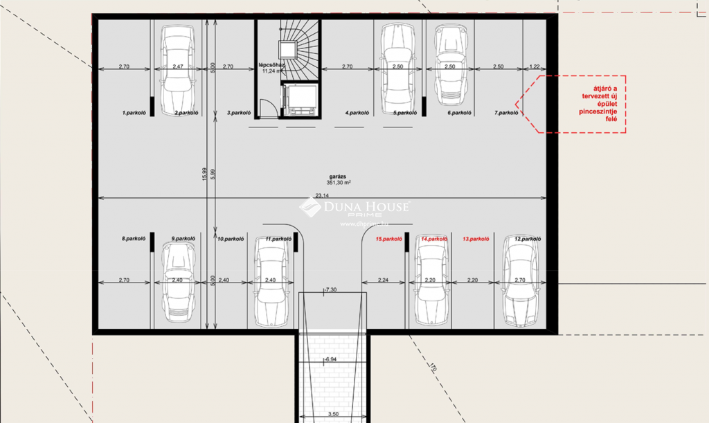 A lakáshoz opcionálisan egy (elektromos töltőállással is rendelkező) teremgarázshely vásárolható.