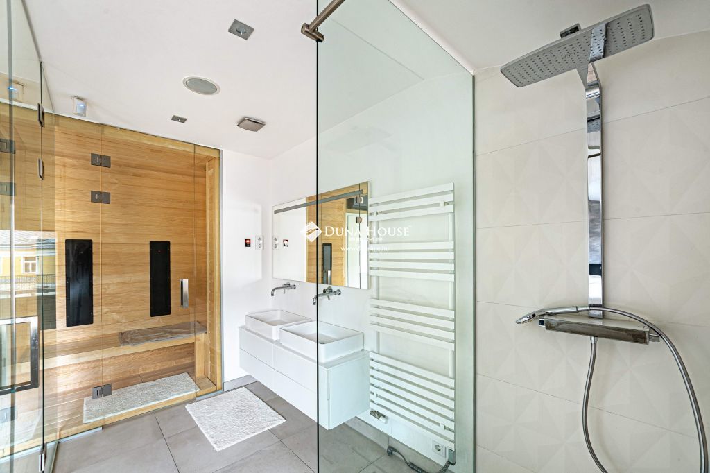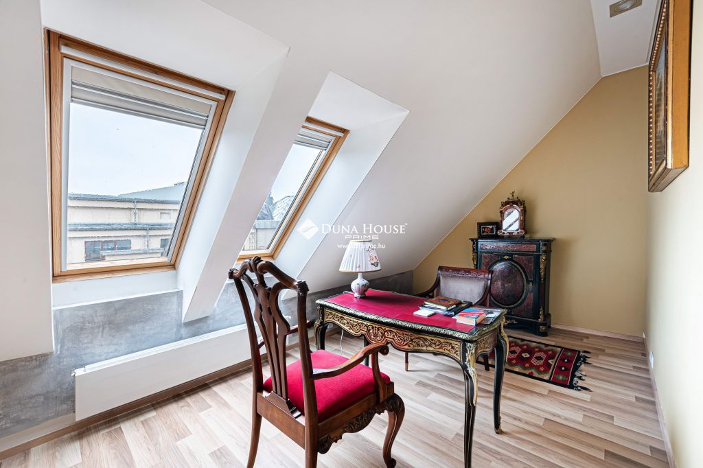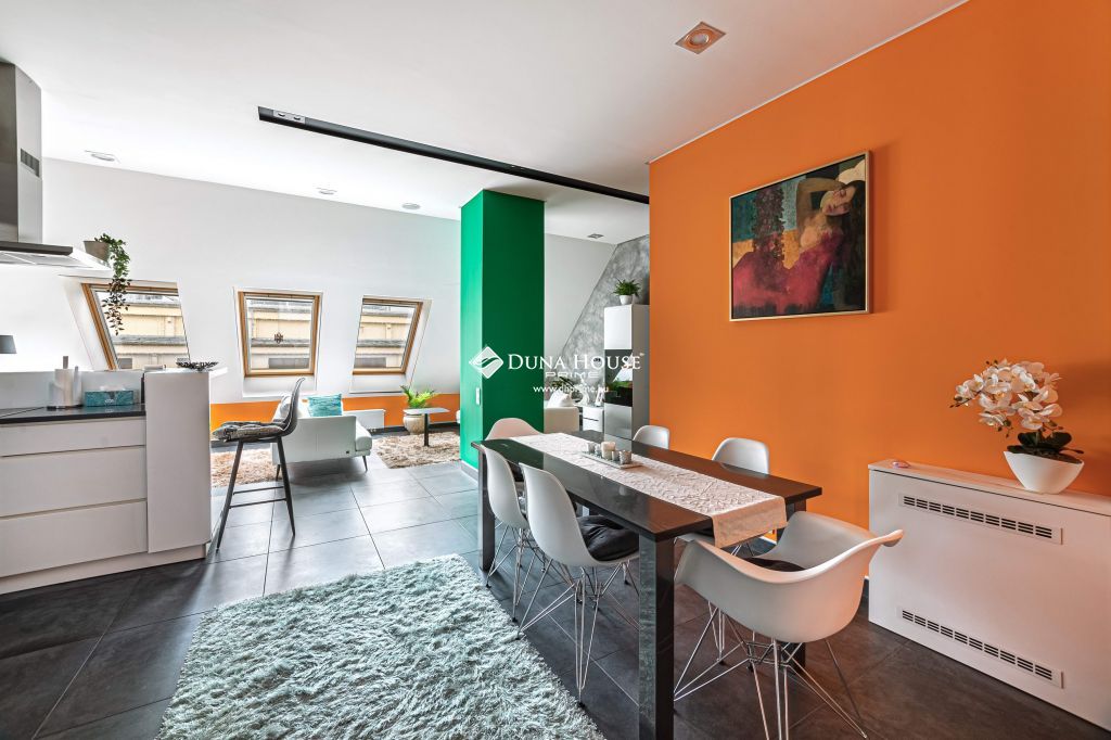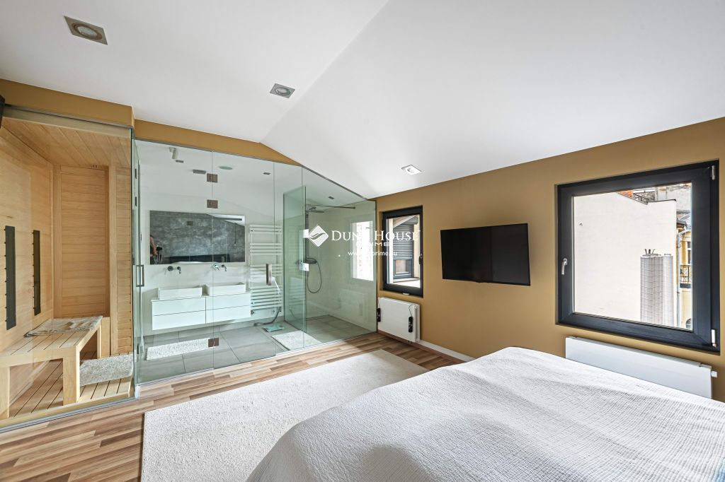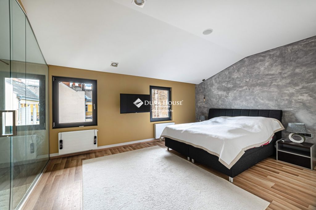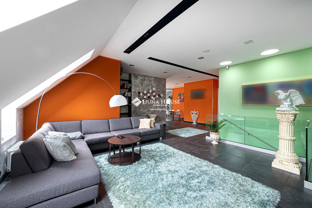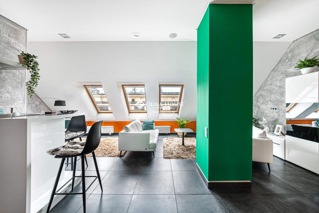 Az ingatlan minden részletében az eleganciát és a modern kényelmet képviseli. A nagy belmagasság, a különleges tetőtéri hangulat és a modern technológiai megoldások harmonikus egységet alkotnak.