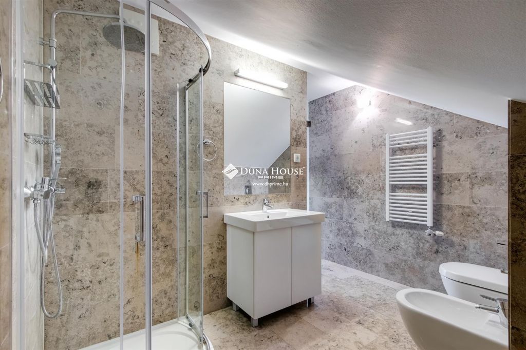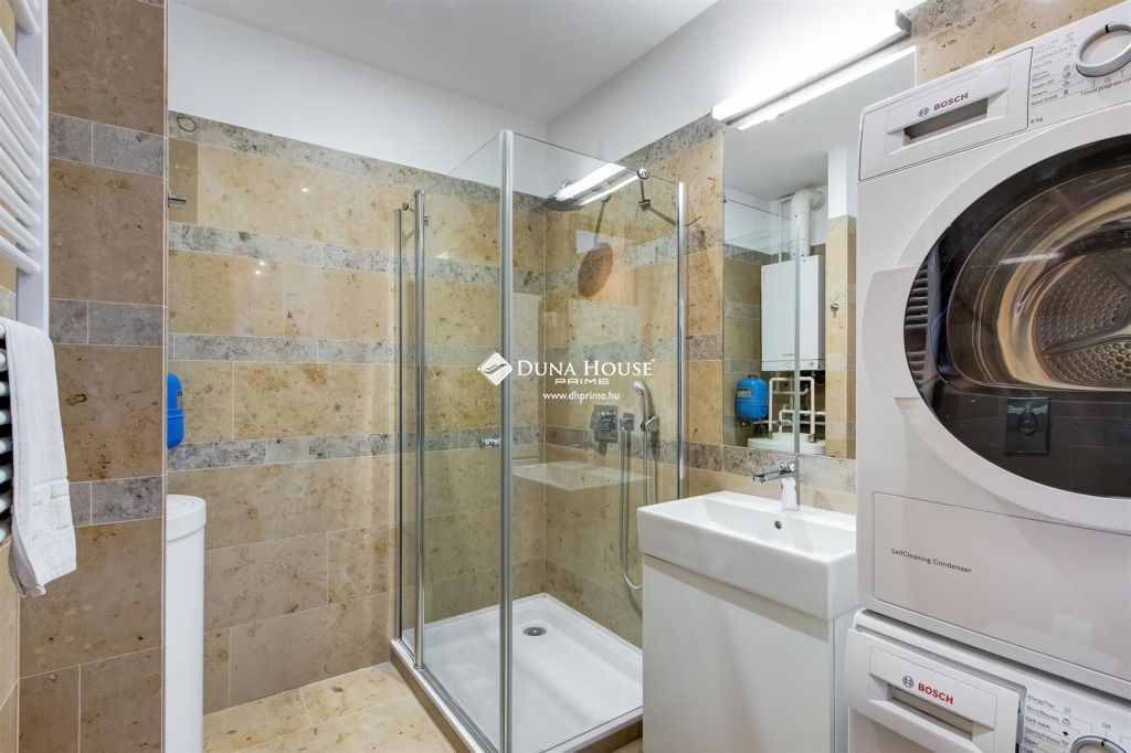 Az ingatlanban egy tágas (54 nm) napsütötte nappali, két tágas hálószoba, két jól felszerelt fürdőszoba és egy hófehér, igényes gépekkel felszerelt konyha található. Ezenkívül a felső szinten található a harmadik hálószoba amihez tartozik egy fürdőszoba, kialakításra került egy dolgozó szoba illetve egy méretes gardrób.