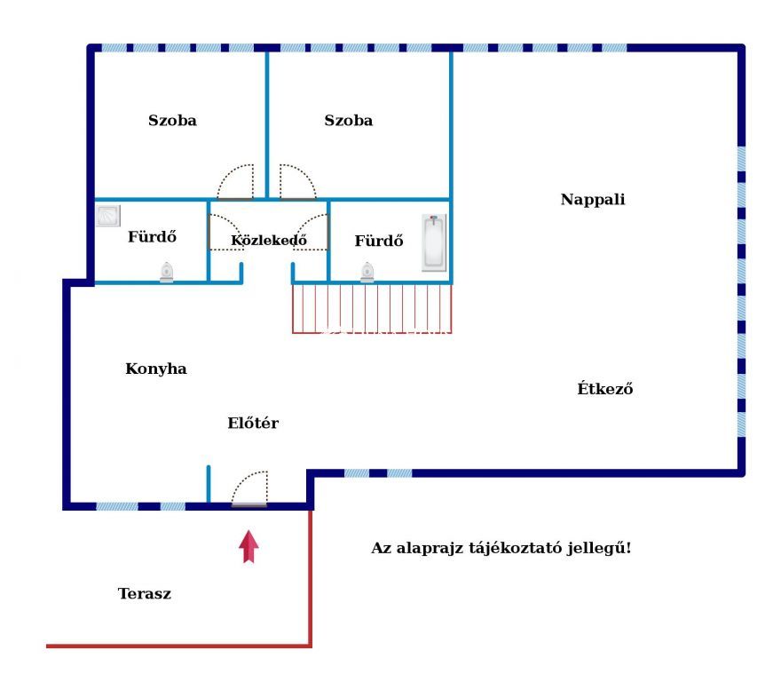 A lakás hivatalos méretei 172 m2, továbbá 13,28 nm-es terasz és egy 29 nm-es pincehelyiség egészít ki, így impozáns, közel 200 nm-es mért (bruttó) nagyság.