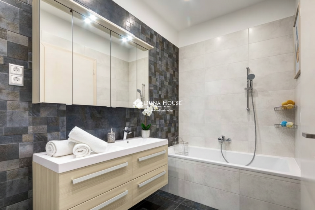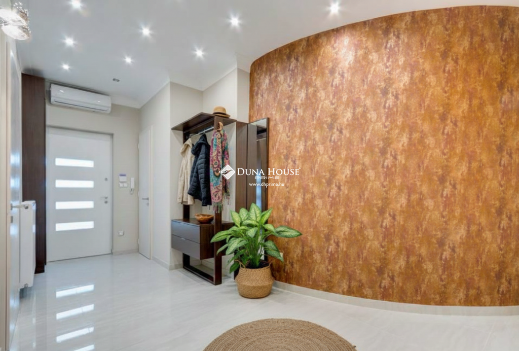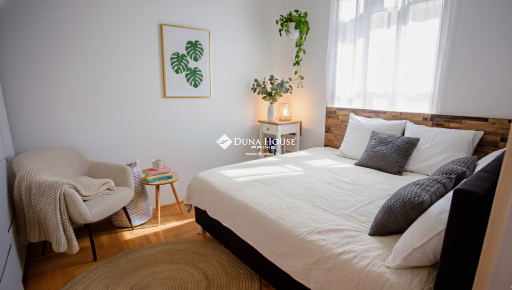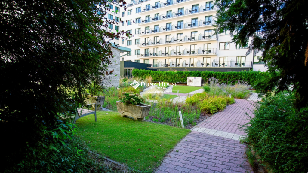 Az ingatlan egy 16 lakásos, liftes, hangulatos zöld belsőkerttel rendelkező ház 3. emeletén helyezkedik el. Rendkívül jó beosztásnak köszönhetően, kapott helyet benne egy több mint 30 nm-es amerikai-konyhás nappali, szülői háló külön fürdőszobával, egy beépített gardróbbal rendelkező gyermek/vendég/dolgozó szoba fürdőszobával és egy tágas előszoba kis tárolóval. Mosogatógép, mosógép, szárítógép és riasztó is található a lakásban. Fűtése gáz cirkó rendszerű, radiátoros hőleadókkal. Minden szobában légkondícionáló található.