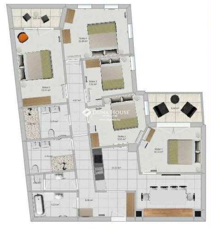 egy öt hálószobás, négy fürdőszobás, két erkélyes, luxus lakás, amely minden szempontból kiemelkedik a piaci kínálatból.