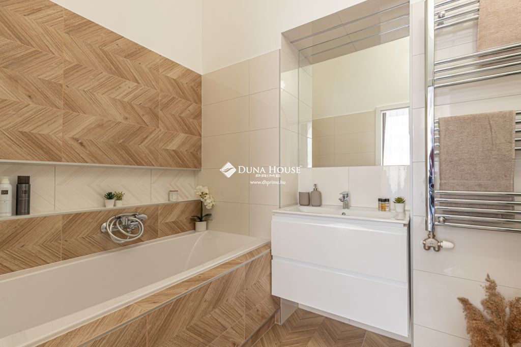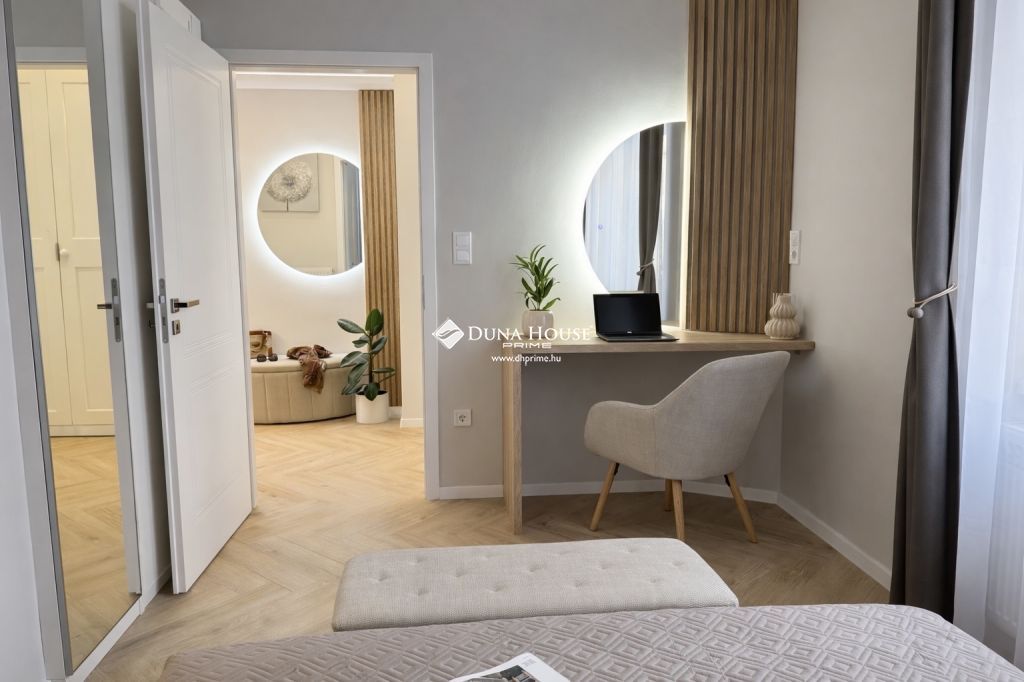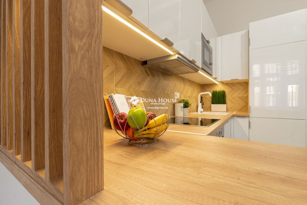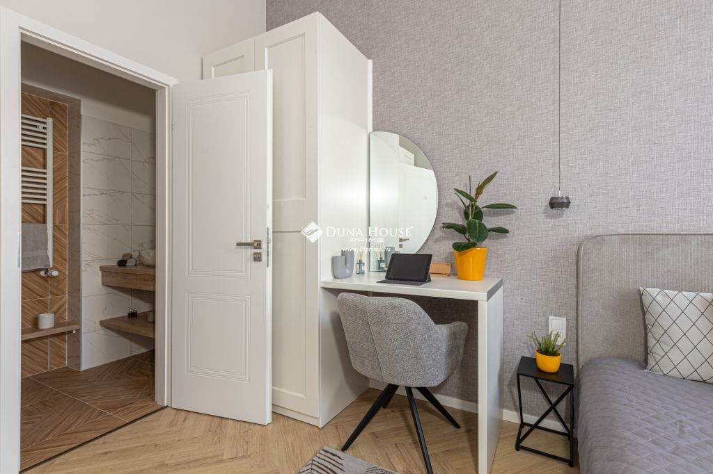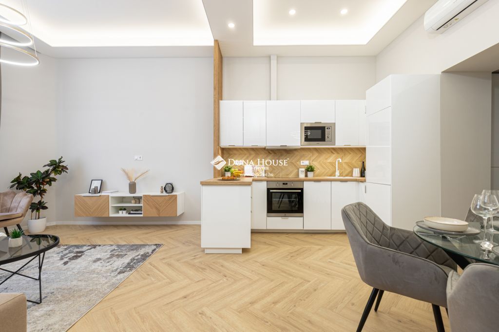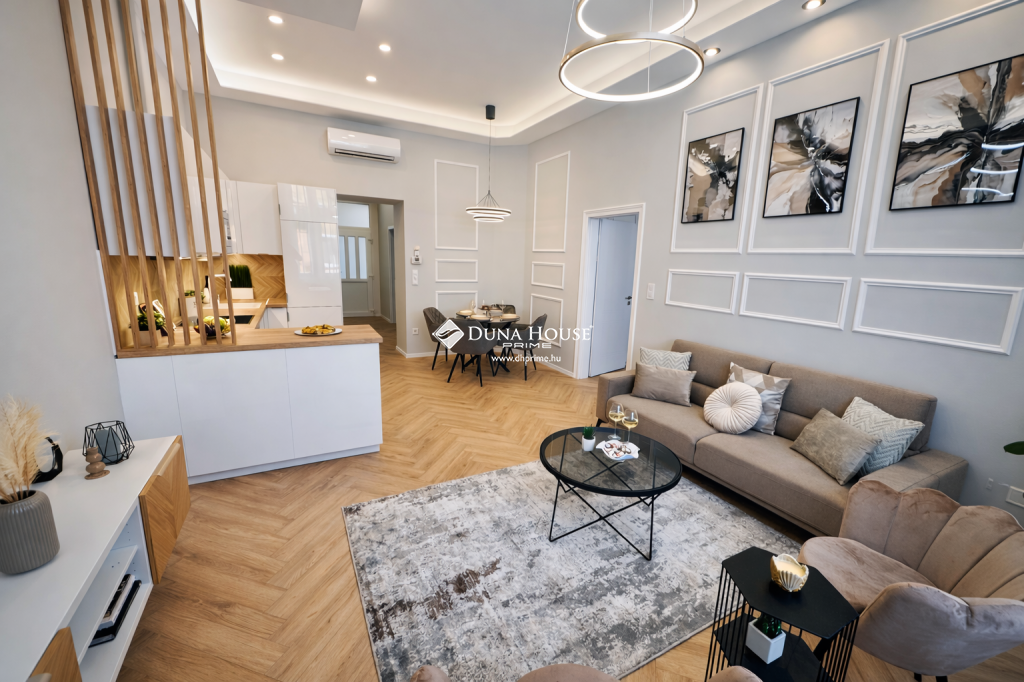 A frissen befejezett felújítás során modern gépészeti megoldások, minőségi burkolatok és letisztult design-elemek kerültek beépítésre. A mennyezetbe integrált rejtett világítás különleges hangulatot teremt, míg a teljesen felszerelt konyha beépített gépekkel és a gondosan összeválogatott bútorzat azonnali költözést tesz lehetővé.