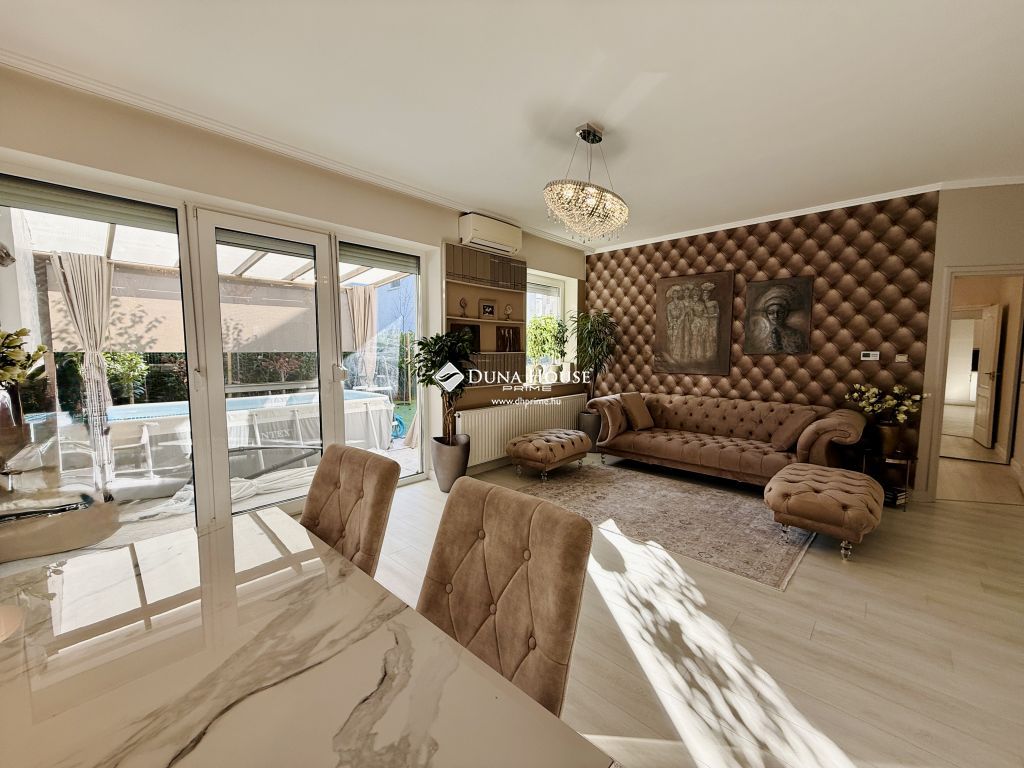 A gondozott, elkerített kert igazi különlegessége a pergolával fedett, fűthető medence, amely valódi privát wellnessélményt nyújt – tökéletes helyszín a kikapcsolódásra és a baráti, családi pillanatokra.