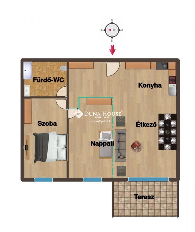 A nappali közvetlen kertkapcsolattal rendelkezik, a hálószoba pedig ideális pihenőzónát biztosít. Az ingatlan jelenleg egy hálószobás, de igény esetén visszaállítható a második szoba is. A lakás minden részlete minőségi anyagokkal és modern megoldásokkal lett kialakítva, így garantált a maximális komfort.