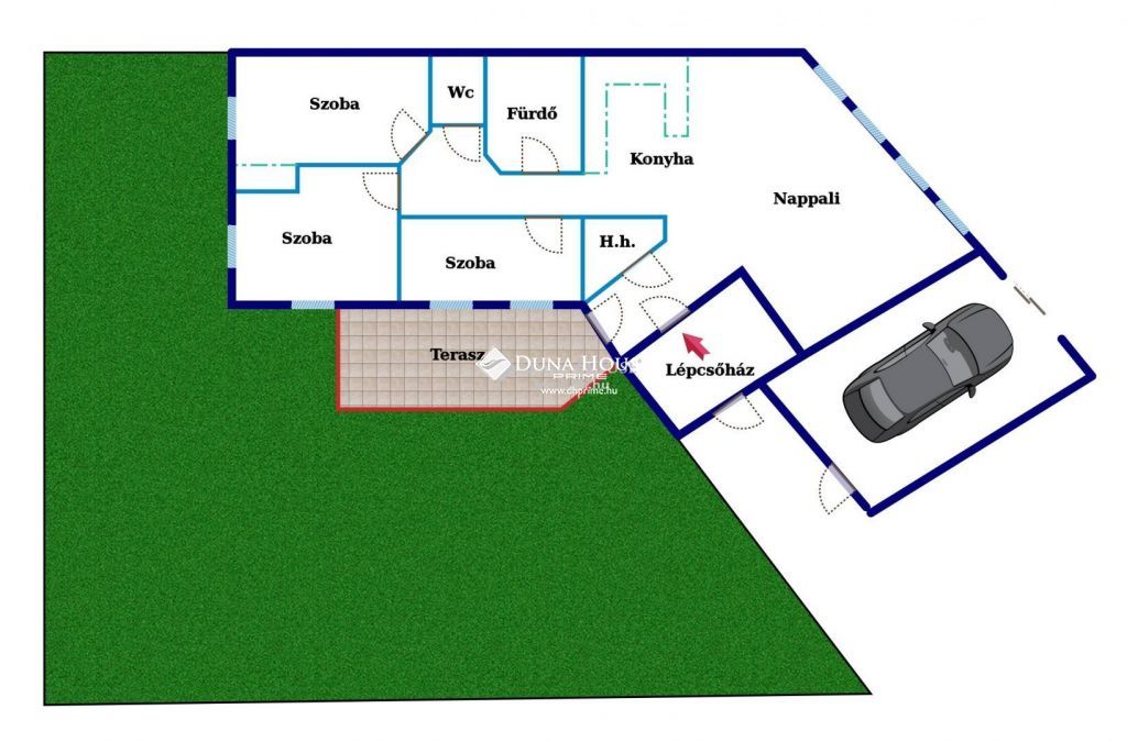 A 91 nm-es lakótérhez 17 nm-es terasz, kb. 170 nm saját kertkapcsolat, valamint 22 nm-es garázs tartozik (a garázs ára: +10 M Ft).